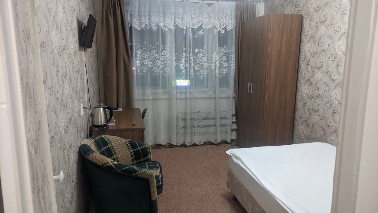 Хотите переместится в 90-е, милости просим. Кровати с металлическими пружинами, интерьер старых времен, тетенька уставшая от всех на ресепшен Как выживает это место, для меня загадка. С существующими возможностями снять достойную квартиру по приемлемой цене с необходимыми отчетными документами, это место просто какой-то скачек в прошлое. Подумайте прежде туда заселиться