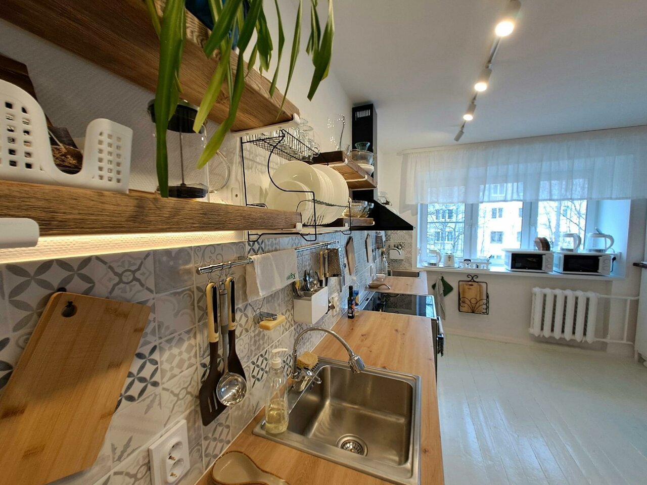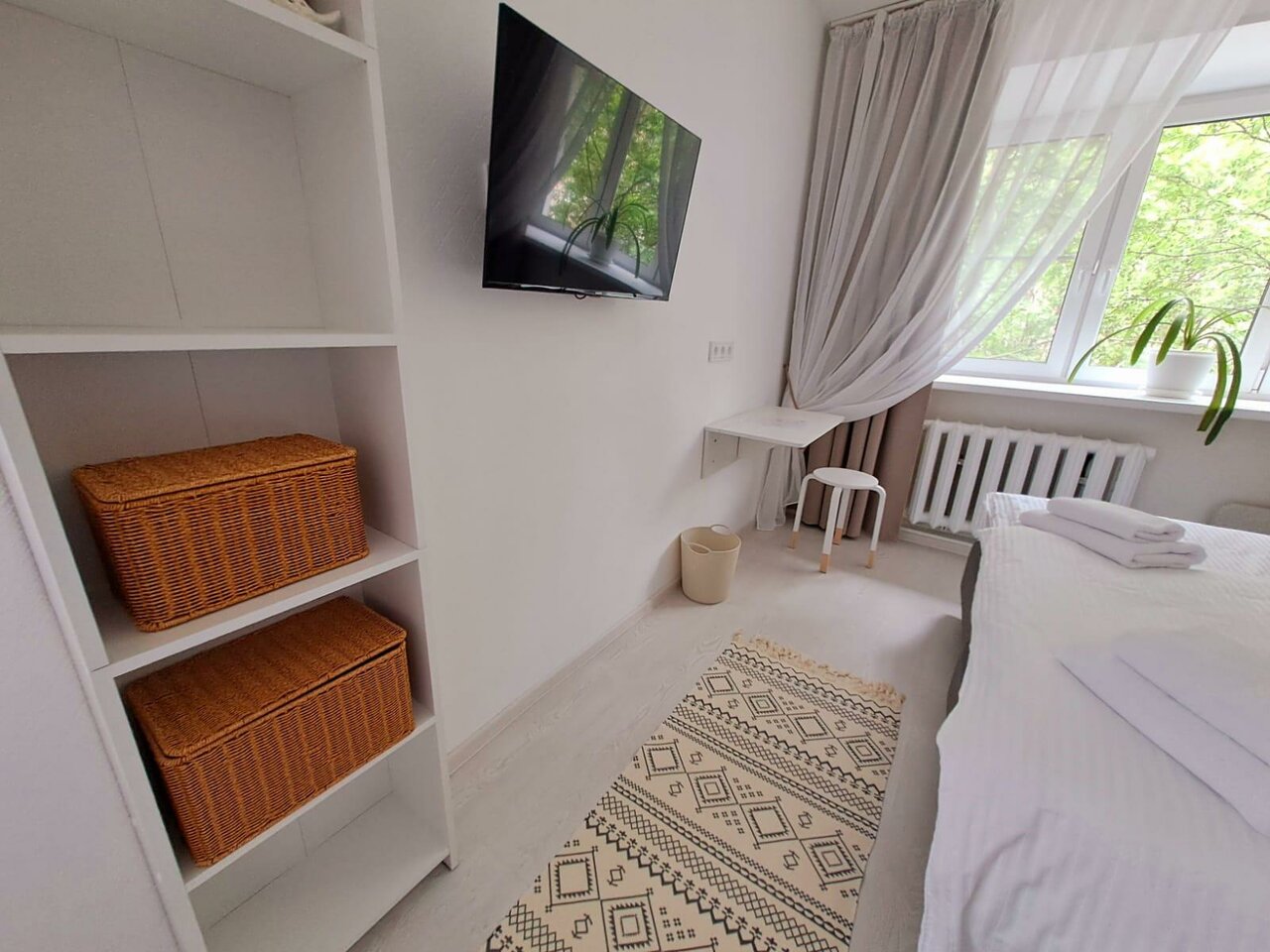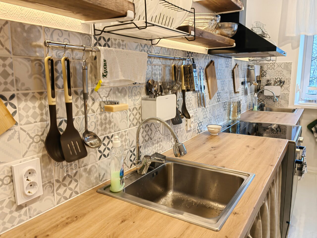 Спасибо Евгении за это место! Чистота, красота, удобство. При том, что я человек капризный, мне было абсолютно плевать на тот факт, что санузел и туалет общие. Очень стильная кухня, номера просторные, постельное белье, подушки, одеяла, как в отелях, высыпаешься по высшему разряду :) Разве что шум от соседей, но это уже зависит от воспитания каждого гостя:) Подглядела настольную книгу владелицы — Ritz Carlton: Как создать сервис премиум-класса от основателя сети легендарных отелей, чувствуется, что человек стремится сделать на 5 с плюсом! Евгения, удачи Вам во всем!