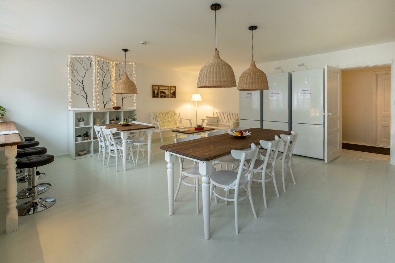 Очень приятная, домашняя атмосфера. Симпатичный северный дизайн. Удобная общая зона, где можно и поработать, и отдохнуть. Вкусный завтрак, вай-фай, очень чисто.