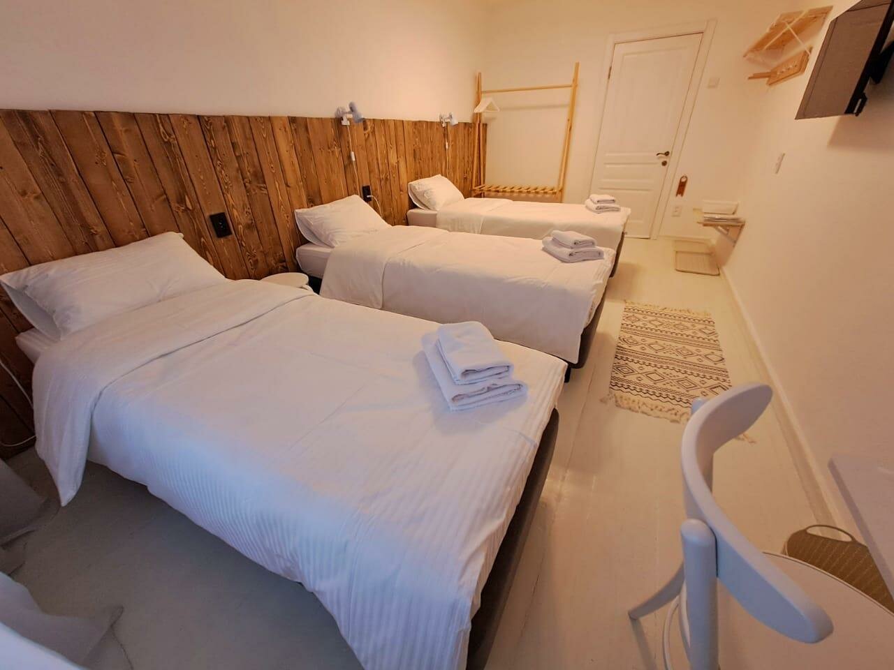 номер эконом 3-х местный, общий санузел с душевой кабиной на против номера. В номере 1 односпальная кровать и 1 двухспальная кровать, телевизор, тапки, полотенца, Wi-Fi. Без окна