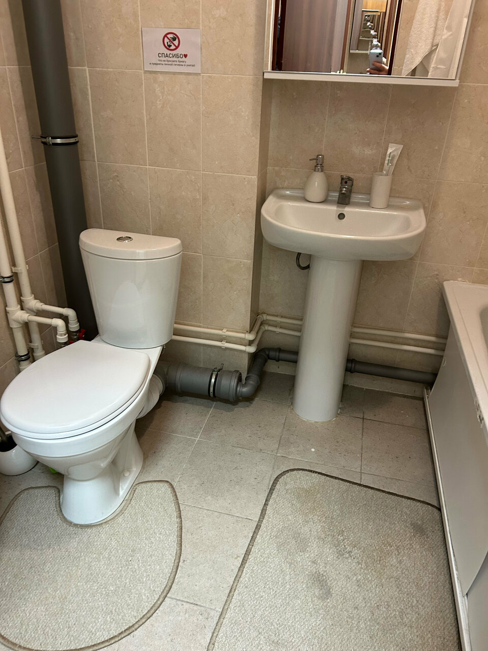 - Грязь в номерах (разводы на полу, налёт на смесителях).