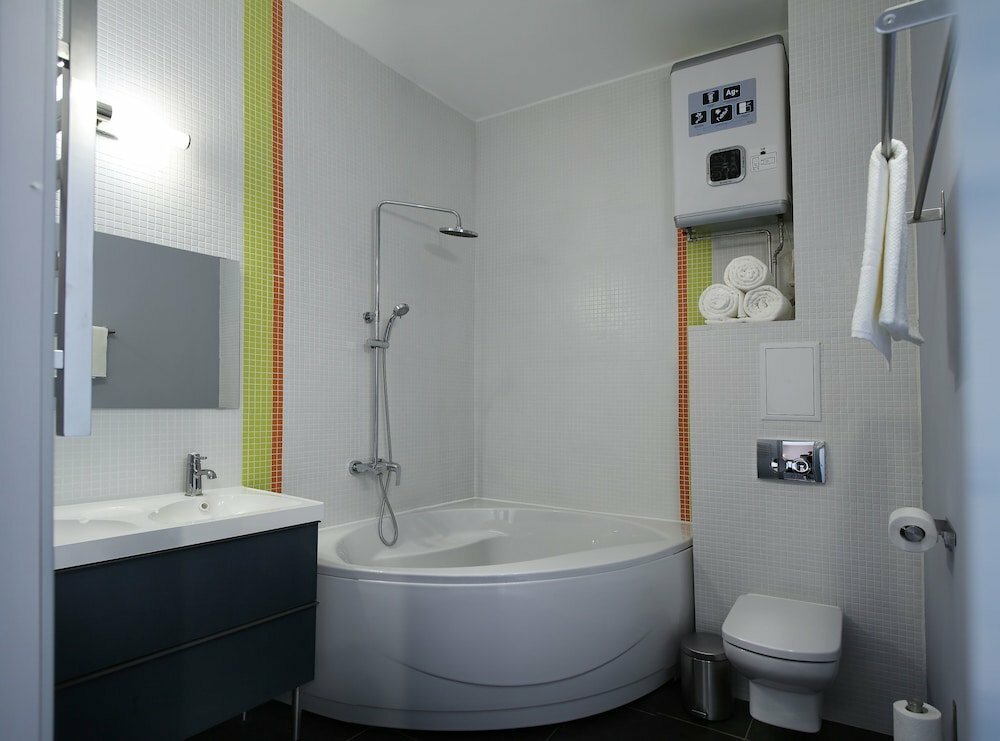 Удобства: — Номера с кондиционером, Wi-Fi, телевизором, мини-баром, чайником и санузлом. — Бесплатная парковка, платный трансфер (включая аэропорт), камера хранения. — Дополнительно: фен, халаты, тапочки, утюг, стиральная машина, посуда, сейф.