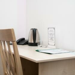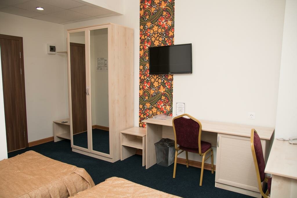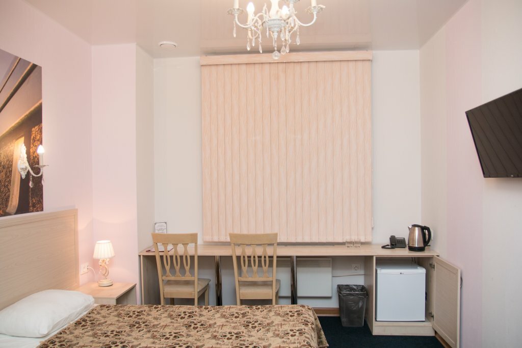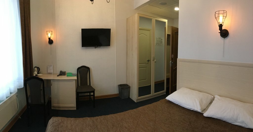 Уютный номер с двуспальной или двумя односпальными кроватями. В номере есть все необходимое для комфортного проживания: постельное белье, комплект полотенец, телевизор, ванная комната с гигиеническими принадлежностями
