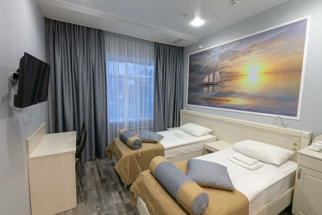 Хорошая гостиница класса 3 звезды. Персонал приветлив и отзывчив. Готовят в кафе при гостинице вкусно по- домашнему. Цены демократичные. Локация рядом с набережной Северной Двины, так что всегда можно прогуляться и увидеть большое количество памятников архитектуры, церквей, музеев. В номерах регулярно убирают, производят смену белья.