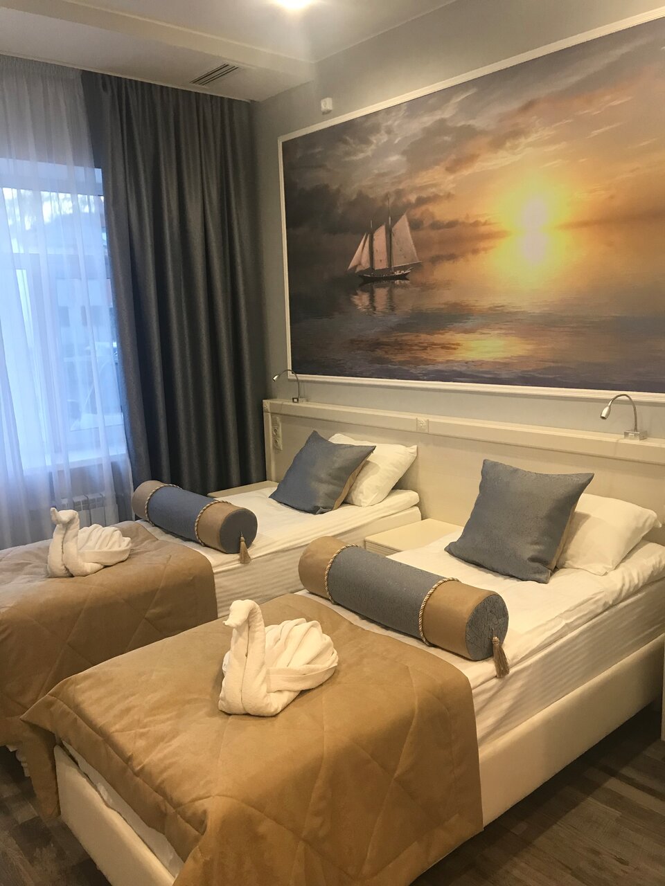 Замечательный отельчик. Удобное расположение, сервис, питание, вежливый персонал, чистенько, красивенько. Жили в аппартаментах, было все для комфортного жилья….Были приятно удивлены , что есть даже услуга’Стирка белья’. Питание в кафе при гостинице недорогое, но очень обильное и вкусное. Все супер! Всем огромное спасибо!