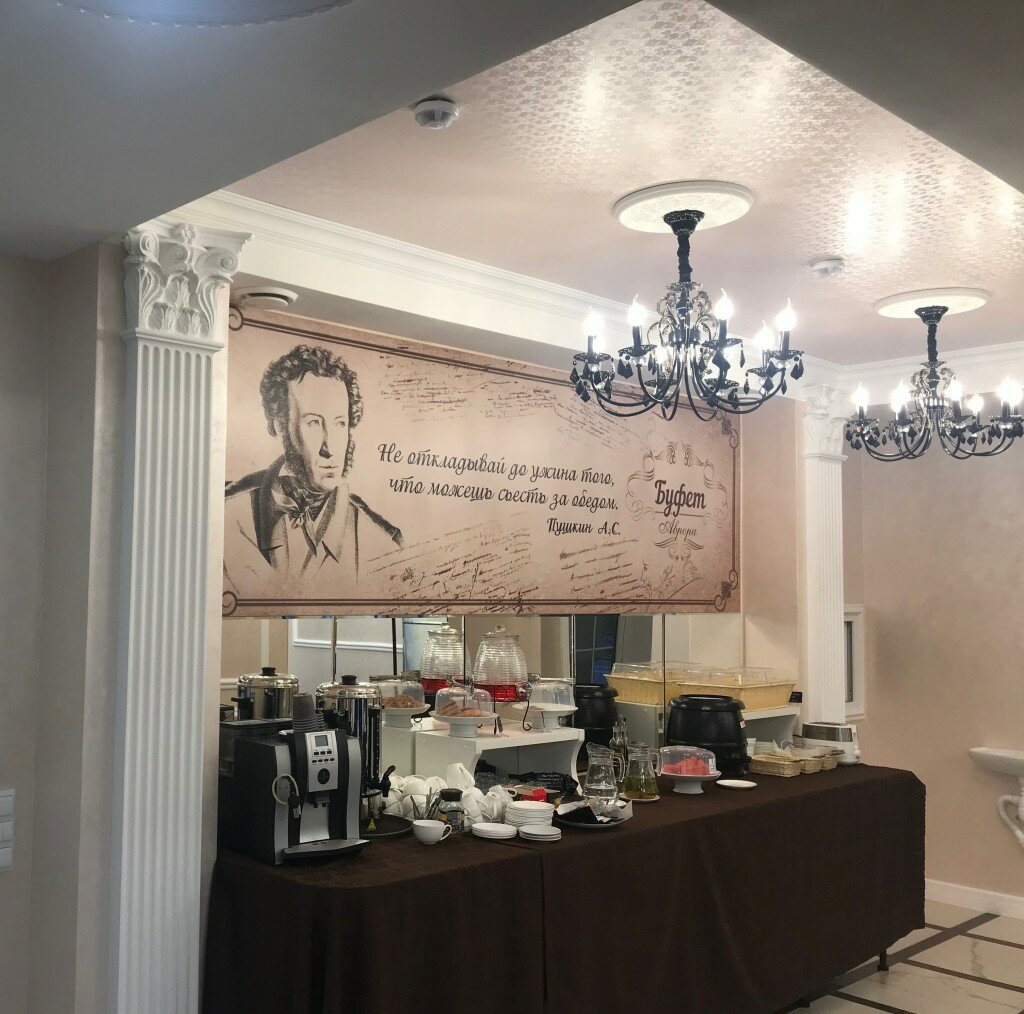 Скромно, соответствует цене. Все по простому без изысков. Из минусов это кухня при гостинице и отсутствие вентиляции в номерах. Брать шведский стол не рекомендую. Да и вообще лучше съездить поесть в другом месте.