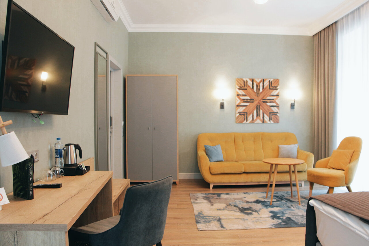 Потрясающая атмосфера уюта и комфорта!Отдельная благодарность сотрудникам:внимательные ,понимающие и чуткие!!!Буду стараться бронировать каждый месяц этот отельЧто жила в люксе,что в стандарте-отношение одинаковое!Чисто и красиво!