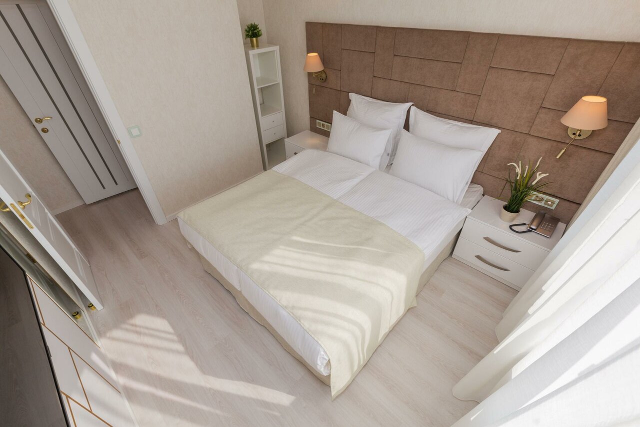 Отличная гостиница, чистый номер! Приятный и отзывчивый персонал. Каждый день приносили новые полотенца и убирались. Очень уютно и прямо в центре города. Очень вкусная еда в ресторане BAZAR, на 1 этаже гостиницы