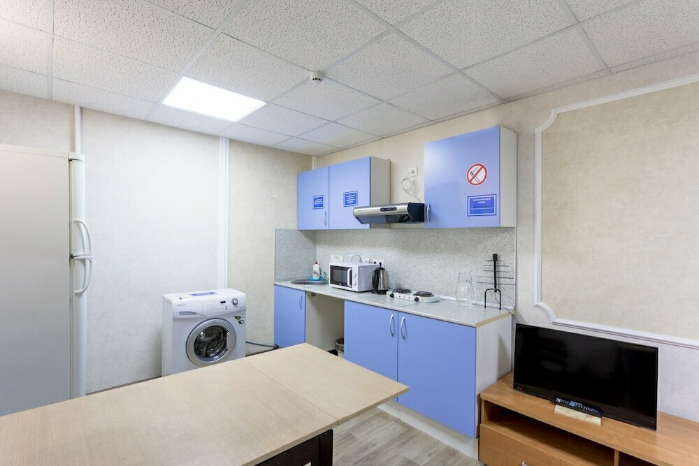 - Хорошая общая зона (кухня, большой телевизор, диван, стиральная машина).