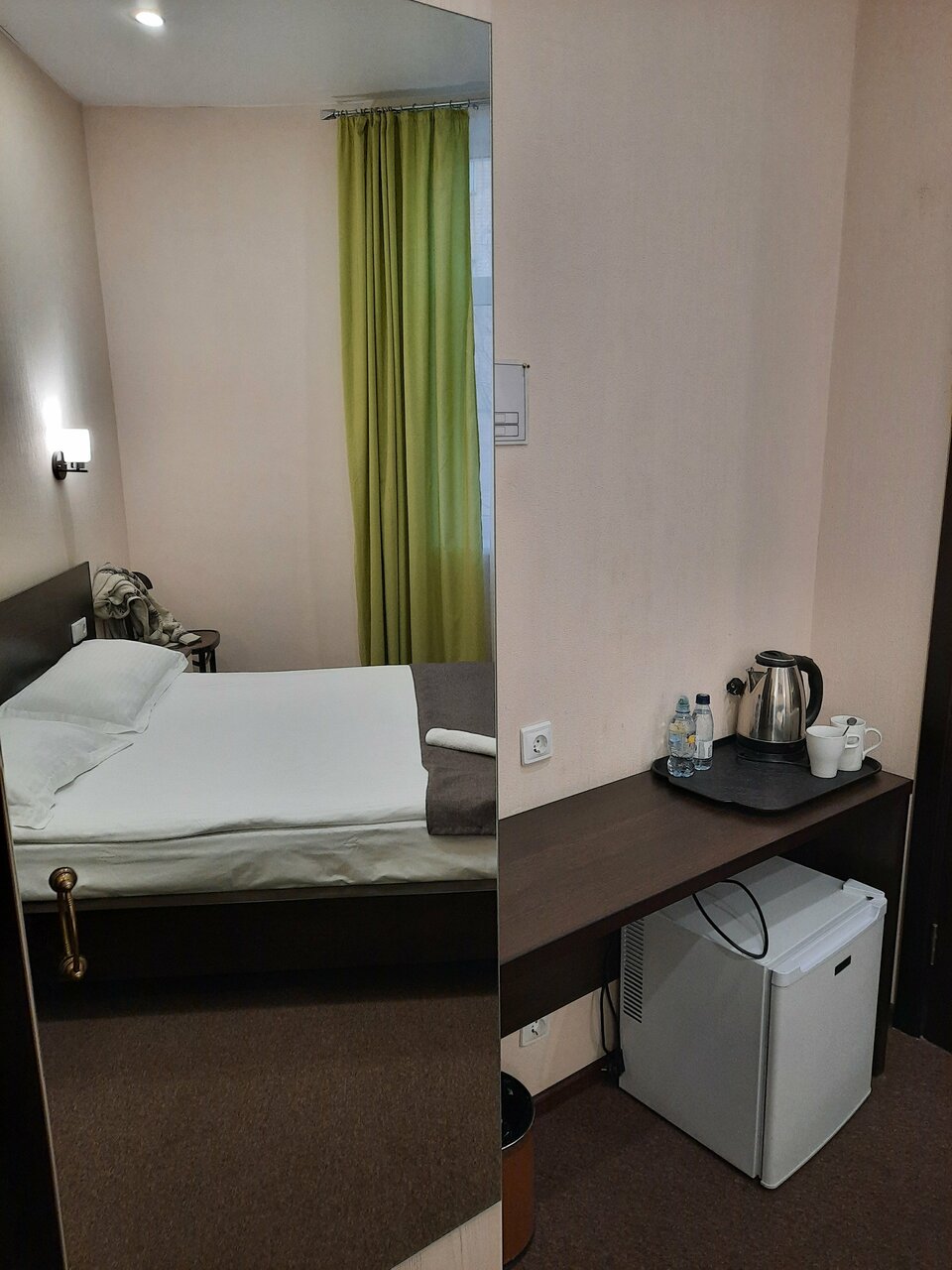 Отель очень понравился.Снимал номер с 13 по 19 сентября.В номере всё есть:холодильник,чайник,кондиционер,телевизор.Всё чистенько,даже пол в санузле с подогревом.Персонал доброжелательный.Сам отель расположен очень удобно-совсем рядом с ЖД вокзалом.Если приехали на поезде,то просто совсем немного пройти и вы на месте.