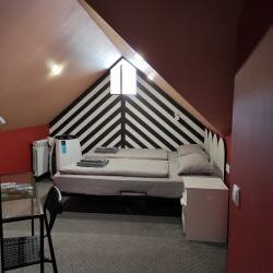 На фото представленных на сайте, нельзя понять, как на самом деле. Первое, что хотелось бы отметить — это железная лестница, по которой в дождь или снег да ещё и с чемоданом проблематично подняться. Во вторых, есть другое препятствие в виде ещё одной лестницы, если номер не на первом этаже. Потолки наискосок создают видимость пространства, а на самом деле — сразу возле кровати надо нагибать голову чтоб не удариться. Про санузел можно писать долго, но скажу кратно. Очень маленькая ванна, туалет не всегда смывается, тк нет напора воды
