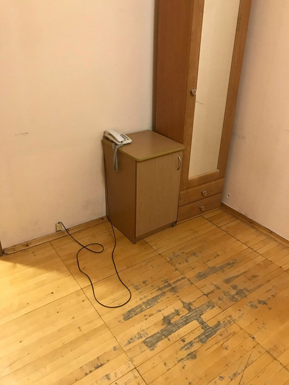 Старая гостиница.Чайников и холодильника в номере нет. Полу косметический ремонт. Вечером на ресепшене админов уже нет. Короче говоря обои в номерах переклеили на европейски манер. Можно вывести девушку из деревни, а деревню из девушки вывезти не льзя.