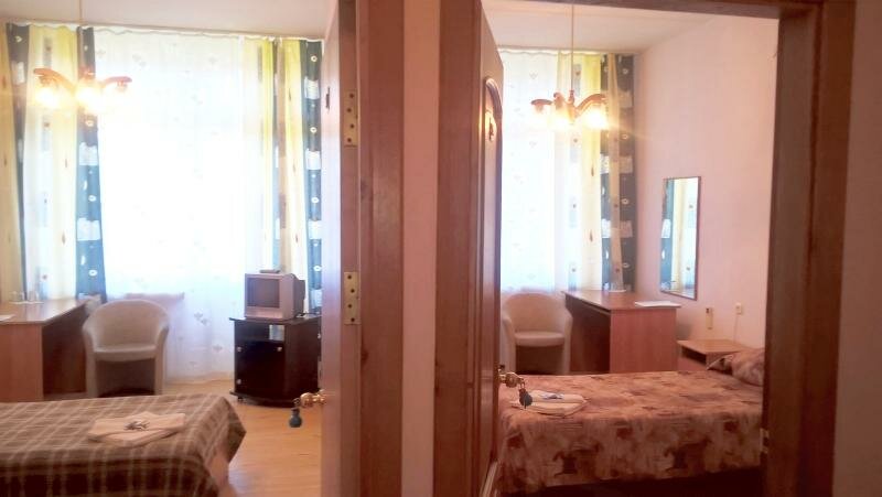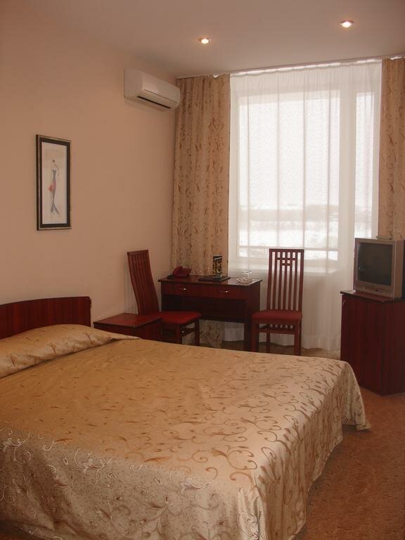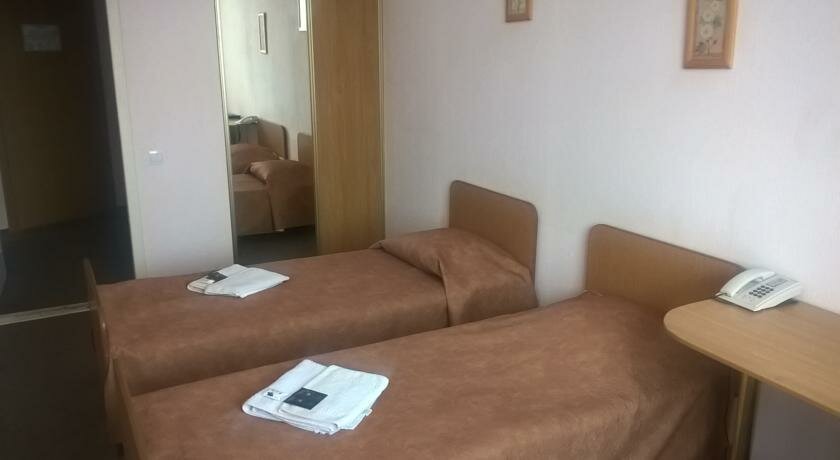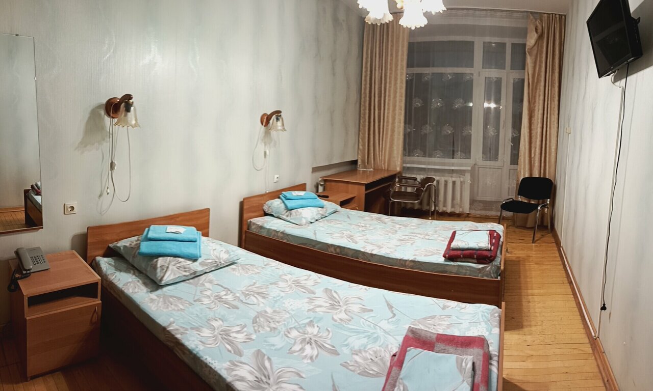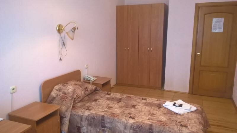 Ставлю четверочку! Конечно не сравнить с отелями на курортах, всё внутреннее убранство очень напоминает Советское прошлое, но за последние пару лет эта гостиница начала быстро меняться в лучшую сторону. В большенстве номеров установлены пластиковые окна, отремонтированы сан.узлы, и многое другое. Матрасы на кроватях конечно бы заменить. Думаю что скоро это произойдет. На первом этаже есть буфет где можно не дорого и вкусно перекусить. В номерах на стенах есть телевизоры с кабельным ТВ, есть вай фай. Для людей которые не жили в роскоши это отличный вариант для ночлега или проживания на время командировки. Тем более что койко место обойдётся в 1100 рублей в сутки.