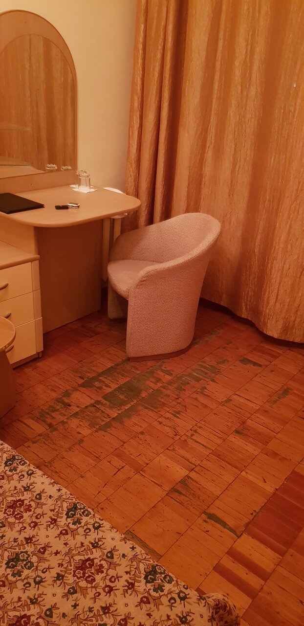 Советский отель. Back to USSR. Если бы не вынужденная обсервация перед выездом на работу, то не выбрал бы для проживания. Хотя стараются, — сделали ремонт. Не задрипанная лачуга, но свежести и новизны не хватает. Но кормят вкусно хотя это я думаю комплимент организаторам банкета.