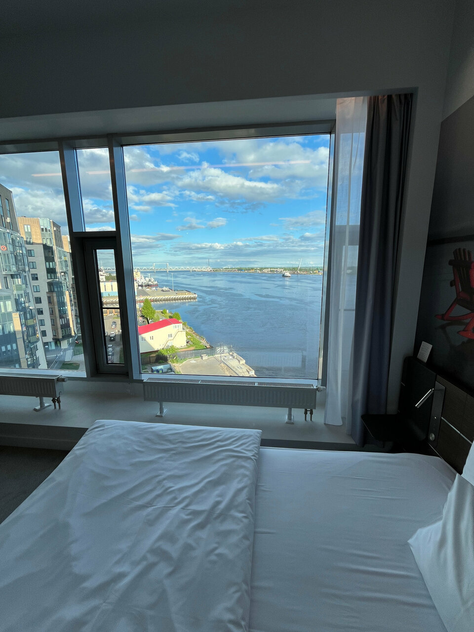 Хороший отель. Номера чистые и уютные. Нам повезло с расположением. Панорамные окна с видом на порт и корабли. Хороший завтрак (шведский стол). Без деликатесов, но есть из чего выбрать, даже в постные дни. Входит в стоимость номера. Интернет шустрый в номере Кофе хороший в ресторане Номер убирают каждый день