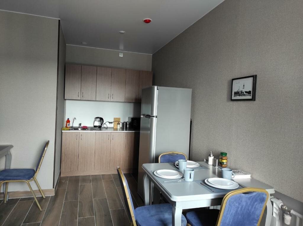 - Наличие кухни с посудой, холодильником и микроволновкой.