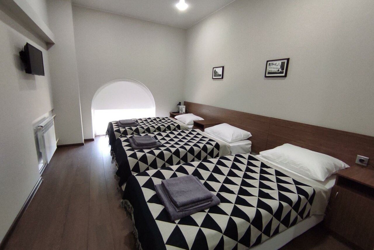 Самый обычный номер 2х местный.жили 4 дня.пожалуй рекомендовать не буду.Держатель для лейки в душе сломан,по полу грибок,запах старой сырости в номере.тв включить не получилось.матрас на кровати норм.звукоизоляции нет. Цена завышена !!! 3100 в сутки дорого . делайте ремонт хотя бы в душе,или снижайте цену.