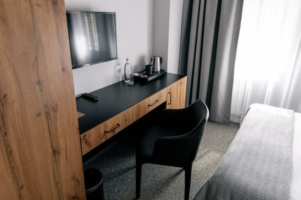Поставлю пока троечку. Плюсы. Отель новый. Аккуратно и чисто. Персонал вежлив. Хорошие завтраки. Удобное расположение. Минусы. Номер очень мелкий. Шкаф стоит так, что из ‘прихожей’ человек покрупнее пройдет только бочком. Повесить куртку можно только в этот шкаф, положить любые вещи в руках, чтобы раздеться, только на пол. В номере щиток с автоматами, гудит ночью от напряжения, спать лично мне мешает. Номер только чтобы спать. Завтрак хороший. Вкусно. Ресторан. Вкусно, но очень маленькие порции. Цены при этом как за нормальные порции.