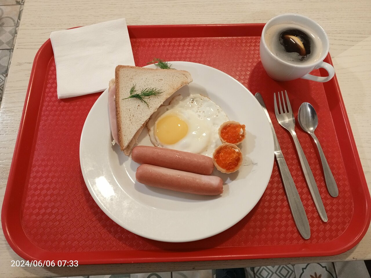 Все чисто, ремонт свежий, кровати мягкие, персонал вежливый. Есть кулер,холодильник,чай кофе. В кафе все вкусно,все очень свежее, начинают работать с 7.30. Я обязательно вернусь еще.