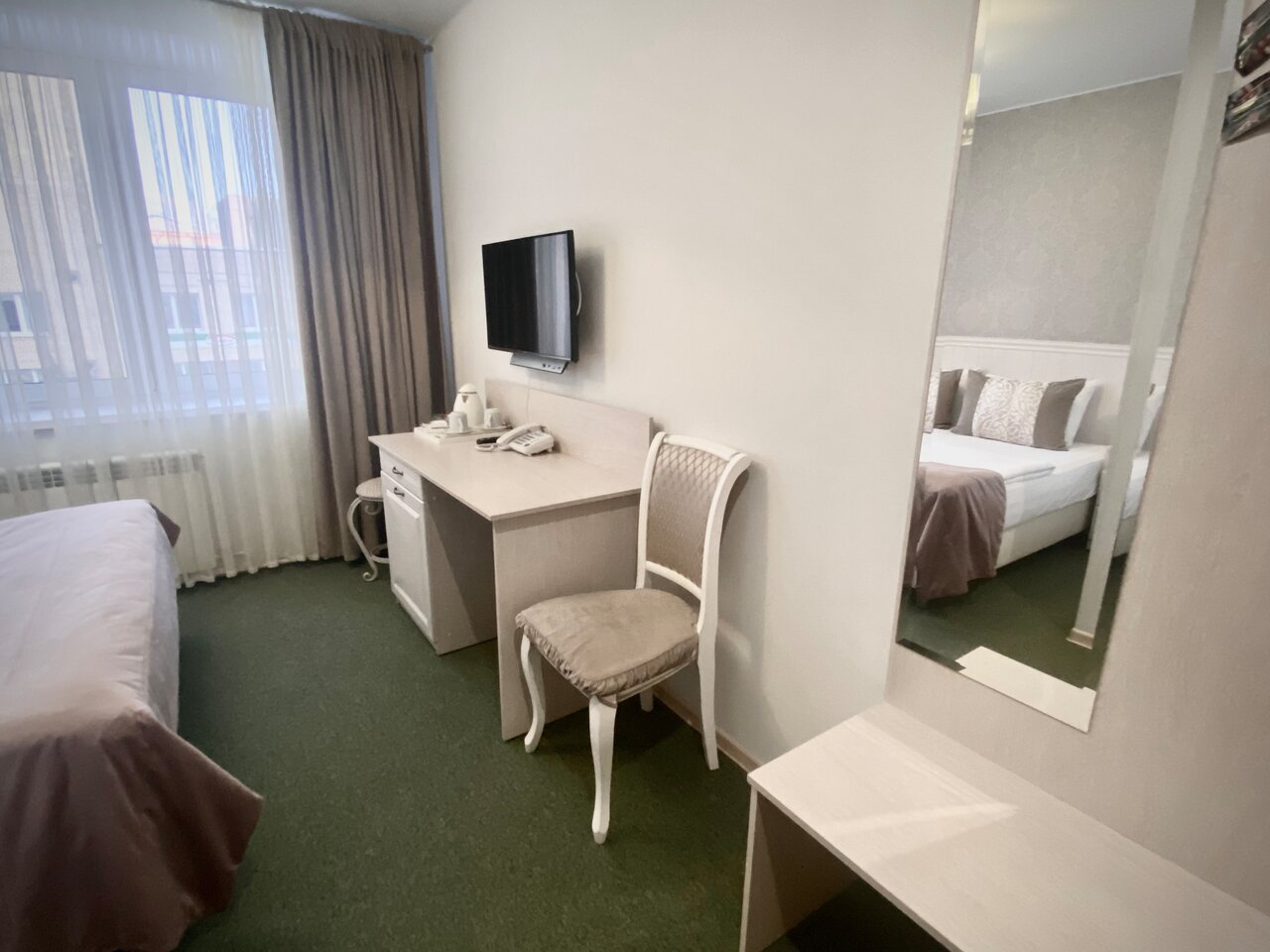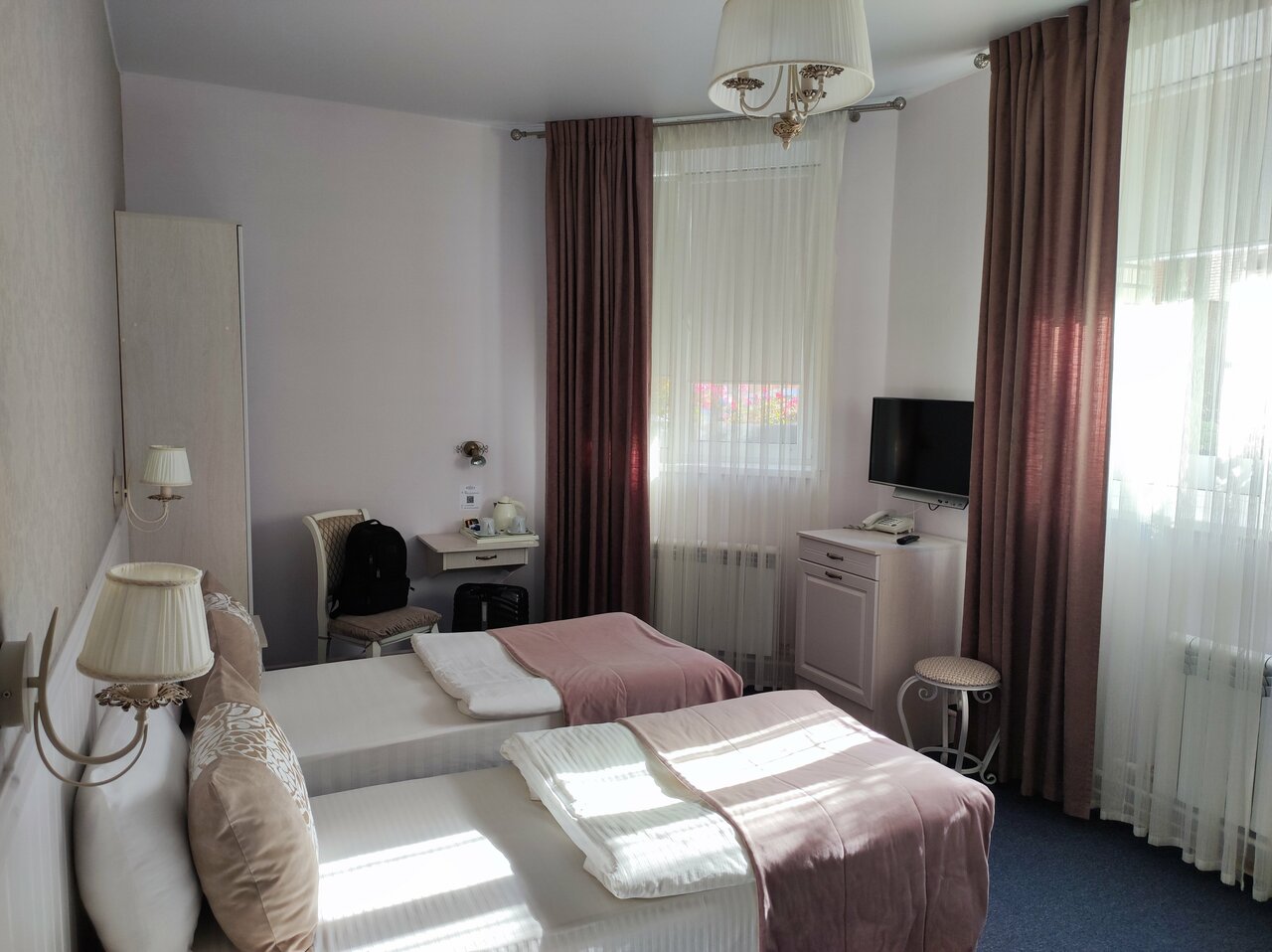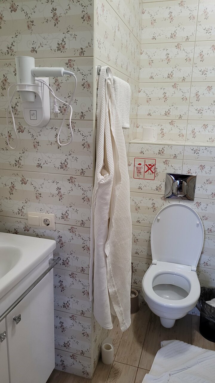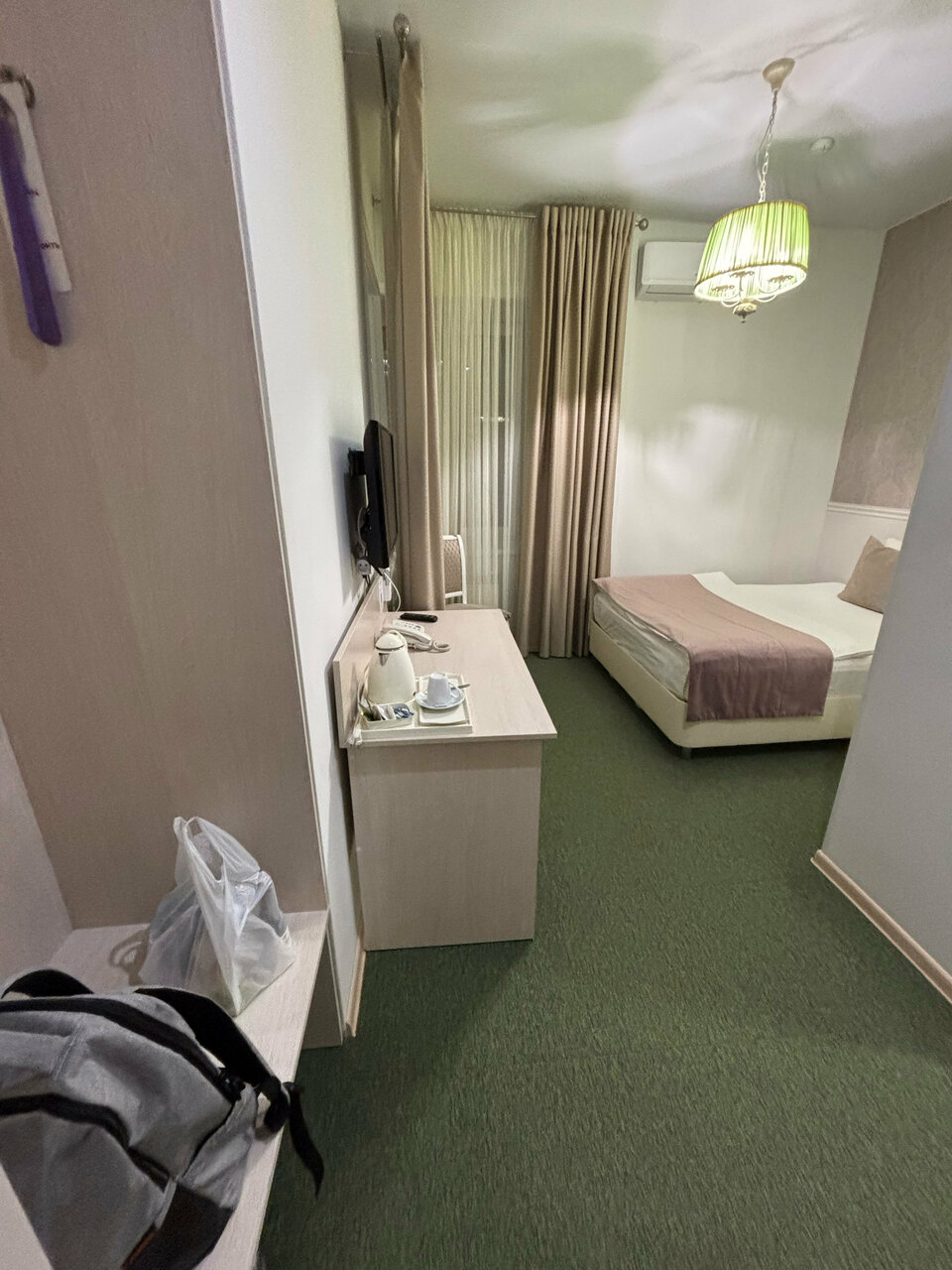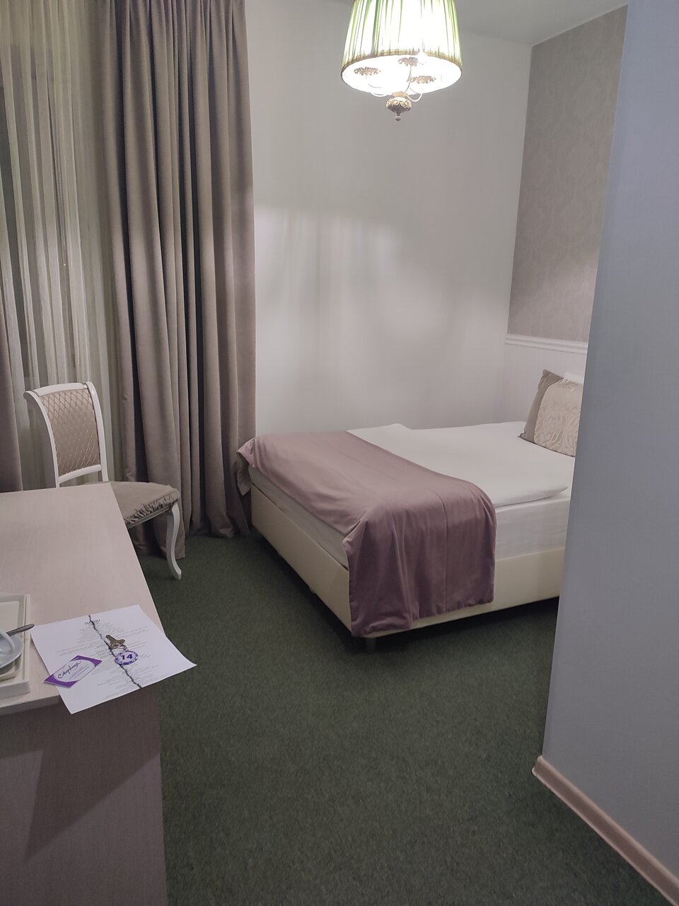 В гостинице чисто, в номере уютно. Все новое. Персонал вежливый, отзывчивый. Брала ужин, вкусно, как дома почти. Единственное, что меня смутило — это теплая вода в душе и слабый напор, но это на вкус и цвет, т.к. я люблю горячую.