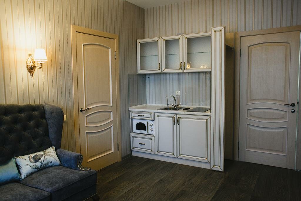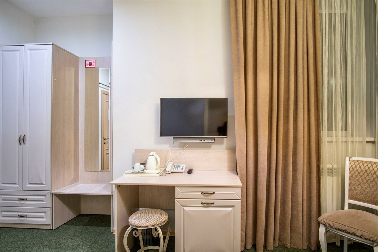 Удобства: — Номера с санузлом, звукоизоляцией, Wi-Fi, телевизором, мини-баром, феном, халатами и тапочками. — Кухонные уголки в номерах, общая кухня, чай/кофе в номерах. — Ресторан, кафе, столовая, завтрак по меню (оплачивается отдельно). — Бесплатная парковка, платный трансфер (аэропорт, ж/д вокзал). — Прачечная, утюг, стиральная машина, камера хранения. — Детские кроватки (бесплатно до 3 лет, платно 4-10 лет), детское меню.
