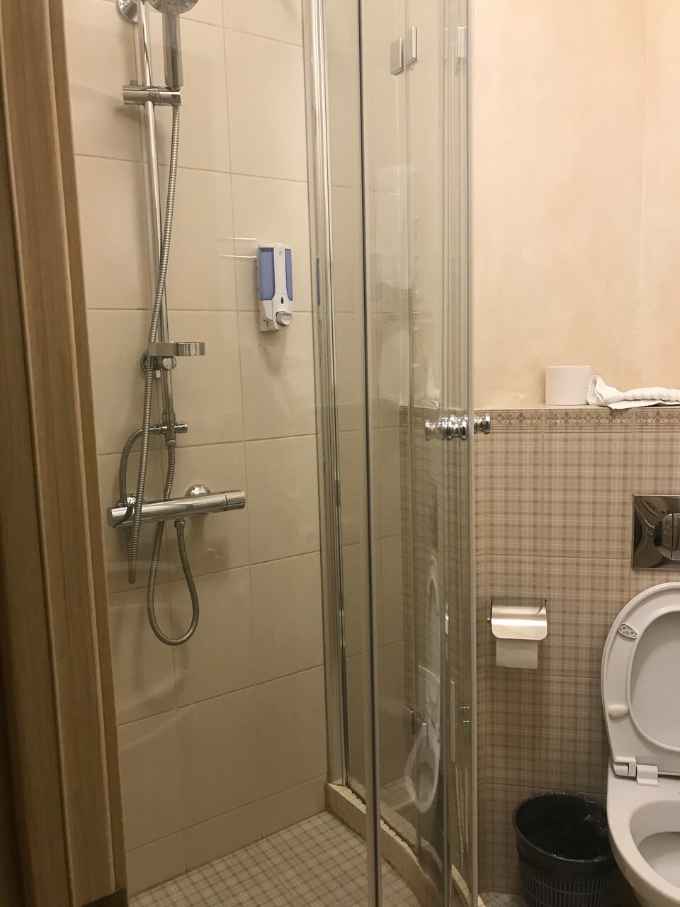 - Теплая вода в душе и слабый напор.