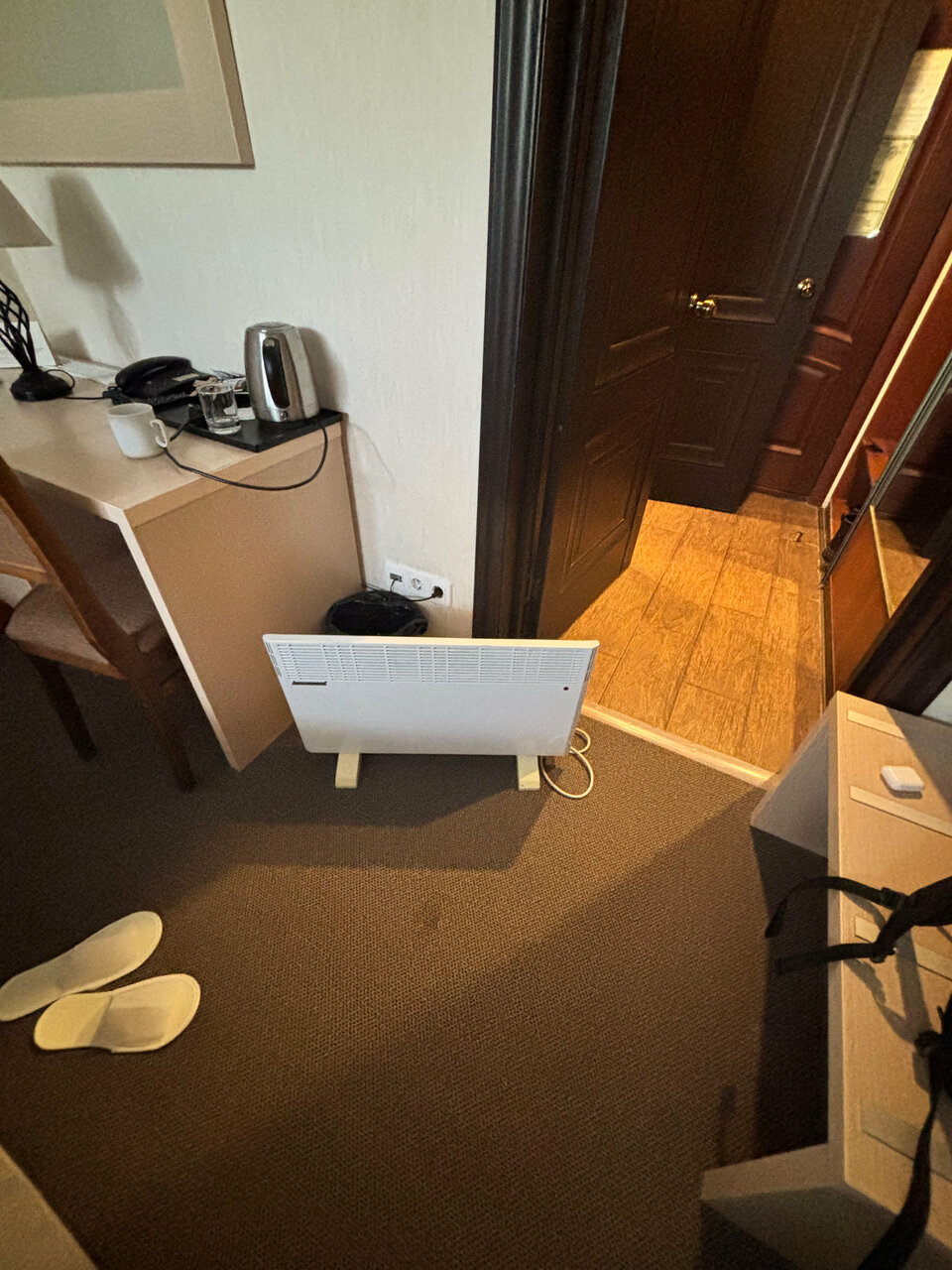 Отличный отель, отзывчивый персонал. В номере есть все необходимое включая чай, воду, зубные и бритвенные принадлежности. Чисто, свежо и прекрасный вид из окна на реку. Дополнительно в номере стоял обогреватель, но он не понадобился. Внизу есть ресторан где проходят завтраки по системе шведский стол. Выбор есть. Цены вне завтрака тоже приемлемые. Для постояльцев есть скидка в 20%. Для этого нужно на рецепшн взять карту для скидки.