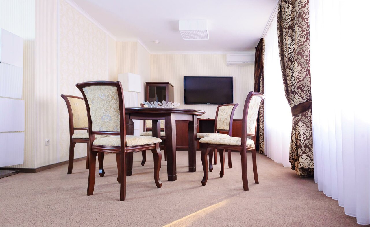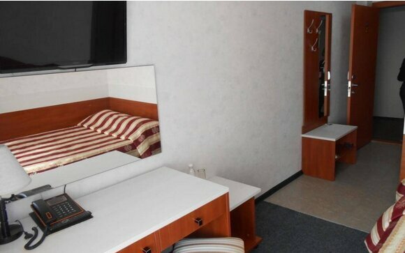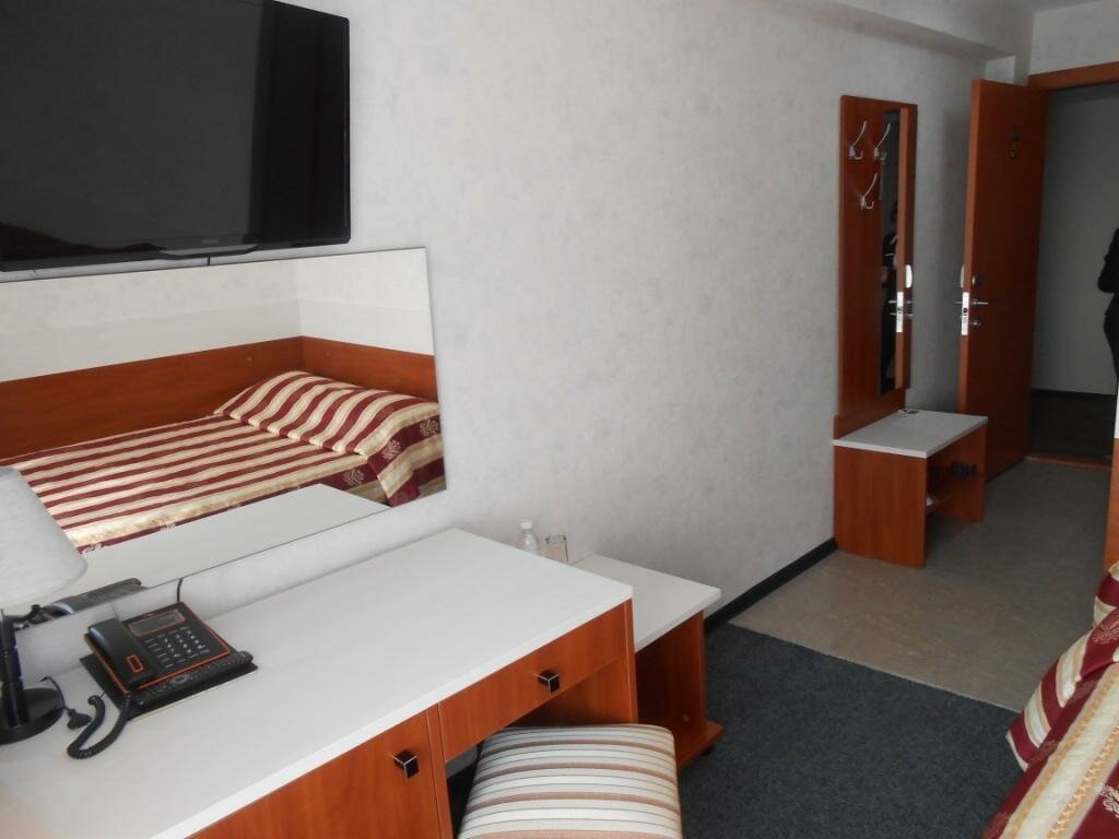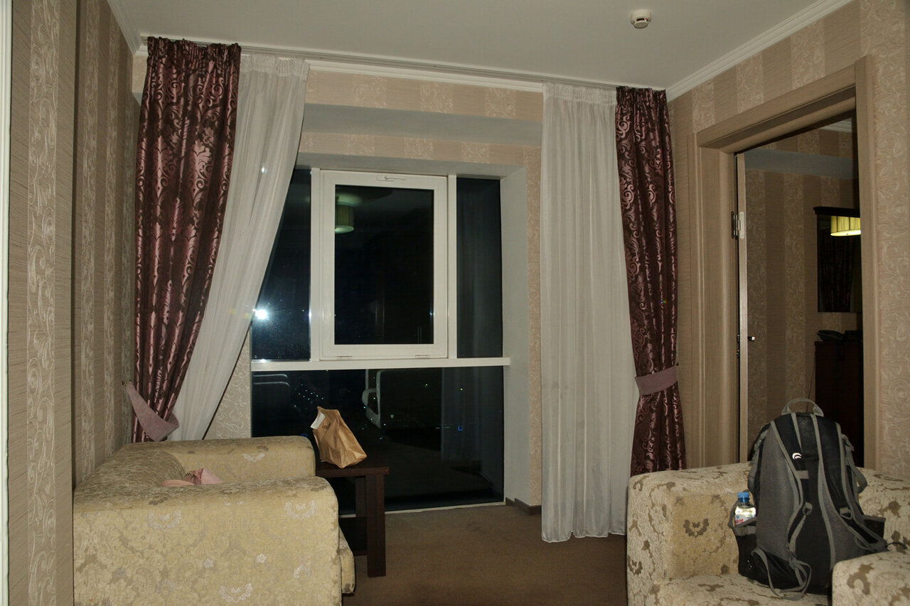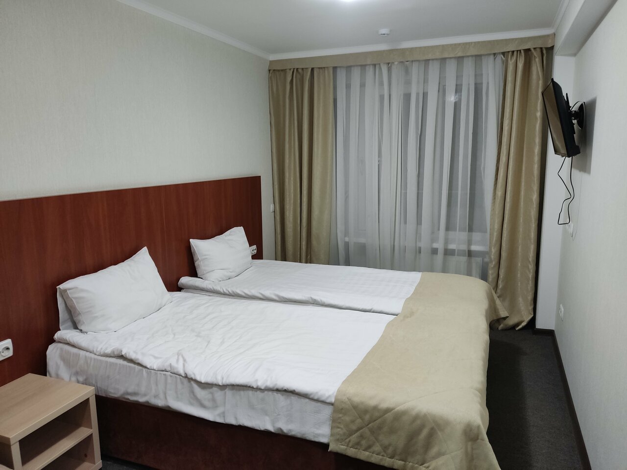 Номер двух комнатный, чистый комфортный , 2 телевизора, холодильник. В ванной : фен, наборы, не очень удобная шторка. Находится рядом с ж/д возможно кому то будет не комфортно , т.к утром очень хорошо слышно. Завтраки скромные, но входят в стоимость. Рядом с гостиницей рынок, бизнес-центр, торговые центры и т.д