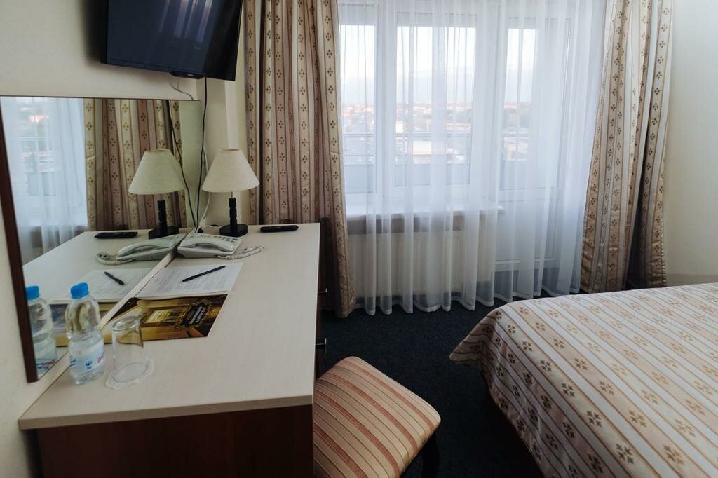 Немного убитый номерной фонд. В целом нормально. Скромный шведский стол на завтрак, но все вкусно и для завтрака достаточно. Розеток около кровати нет. Одна где-то посередине комнаты. Гостиница в центре города, рядом парк, магазин пятерочка. Так же местная достопримечательность это местные автовладельцы. Начиная с девяти вечера они гоняют по улицам с оооочень громко включеной музыкой. Машина может быть убитой снаружи, но прокаченной внутри динамики орут так, что реально трясутся стены. Я жила на 11 этаже и мне было слышно весь репертуар. Так же у них что-то с специально сделано с глушителями. Такое впечатление что сейчас он взлетит. Очень громко ездят. Ну и мотоциклисты каждый вечер гоняют. Не выспишься вообще. Я была тут в конце марта, вся прелесть вышла на улицу. Покой мне только снился. Закрытые окна не помогают. Гостиница хорошая, но в следующий раз поищу где-то на тихой улице