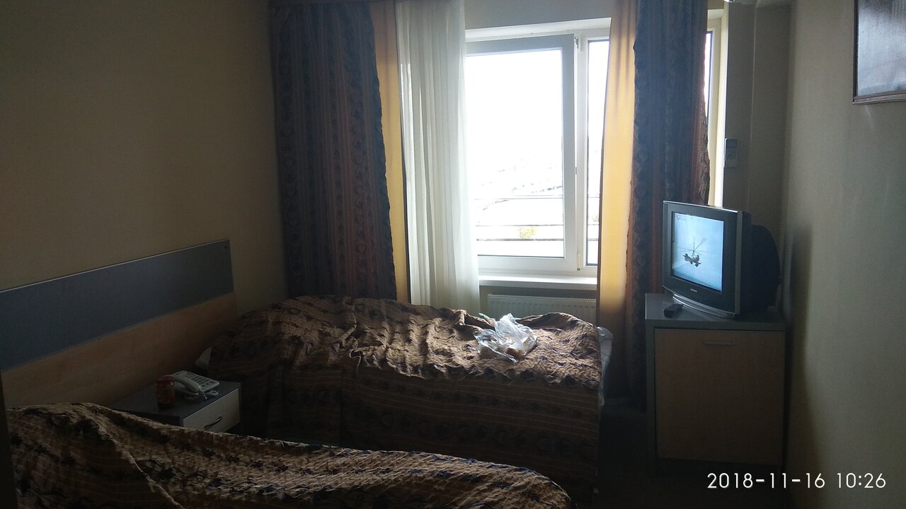 Проживала в одноместном номере на 7 этаже. Напольное покрытие в номере грязное, всё в пятнах, стены тоже грязные, так же в пятнах. Открыть дверь в номер с первого раза не получилось ни разу, бесконца размагнитивался ключ. Стоять ждать лифт можно час. Подняться по лестнице нет возможности, заперты двери на лестничных площадках. Т.к. была в Армавире в служебной командировке, эту гостиницу мне забронировал работодатель и заменить гостиницу на другую не было возможности, пришлось проживать в этой. Хорошо хоть только ночевать там приходилось, целыми днями проводила на работе.