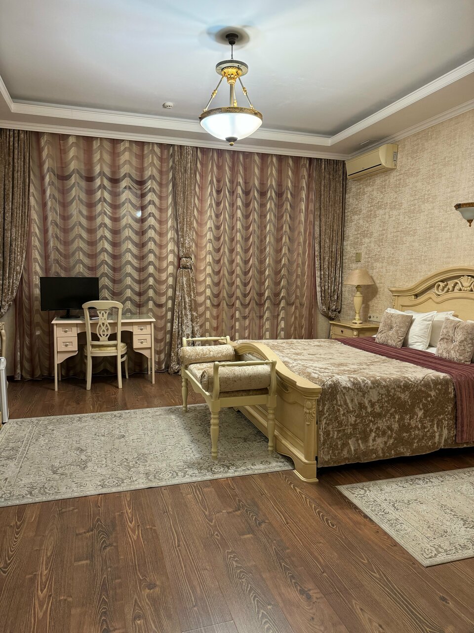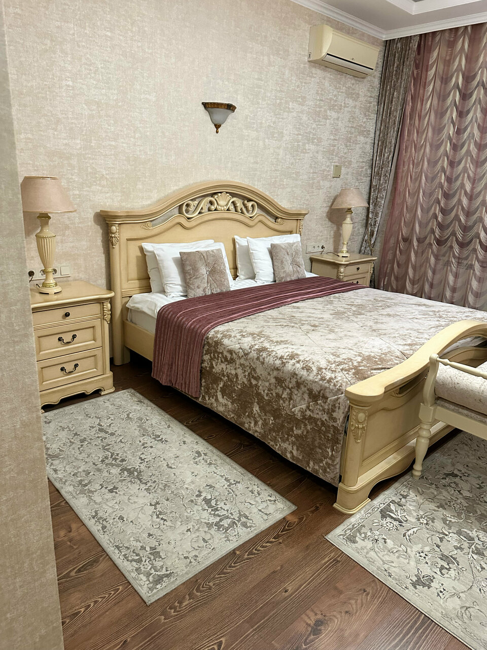Удобства: — Номера с кондиционером, звукоизоляцией, Wi-Fi, ТВ, сейфом, мини-баром, феном, халатами. — Гипоаллергенные и некурящие варианты. — Крытый бассейн, джакузи, сауна, ресторан, бар, конференц-зал. — Бесплатная парковка, лифт, прачечная, услуги консьержа. — Питание: завтрак/ужин (опционально).