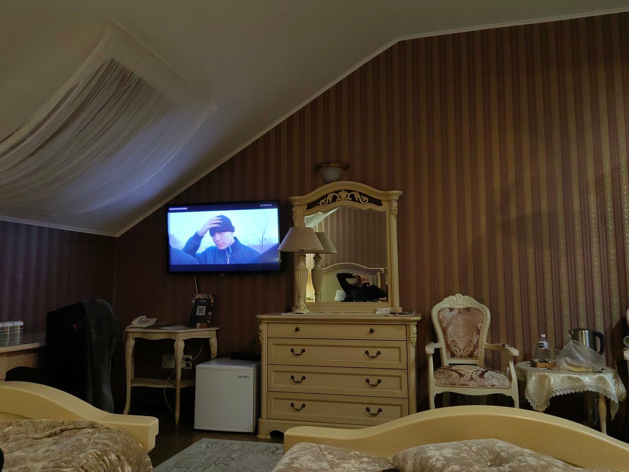 Находясь в номере гостиницы понимаешь, как уважительно относится персонал к гостям. Комфорт, чистота и порядок, говорят о высоком уровне. Вкусный завтрак входит в стоимость номера за сутки. Есть Wi-Fi, парковка, ресторан, сауна. Обалденное место. Хочется побыть здесь дольше.