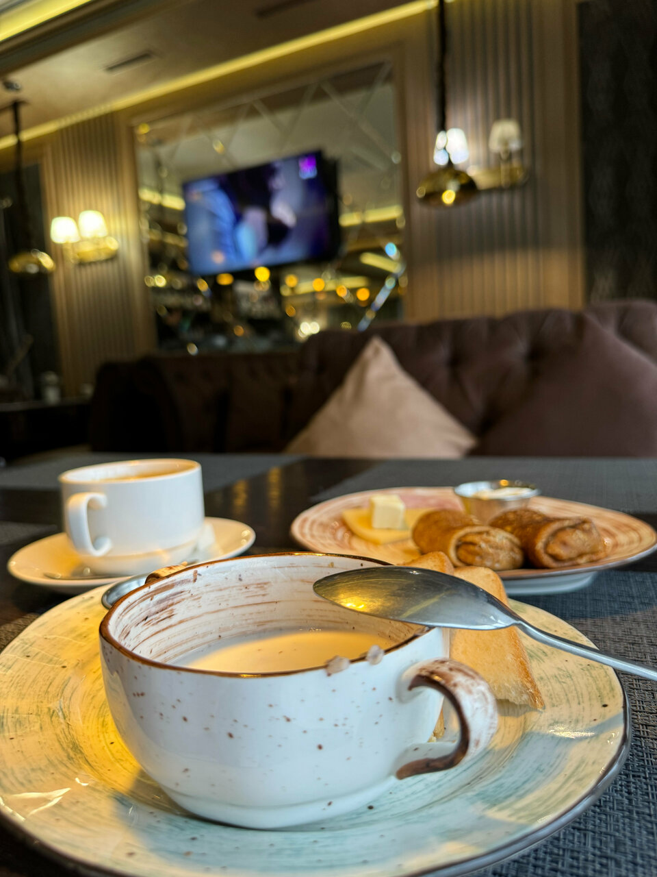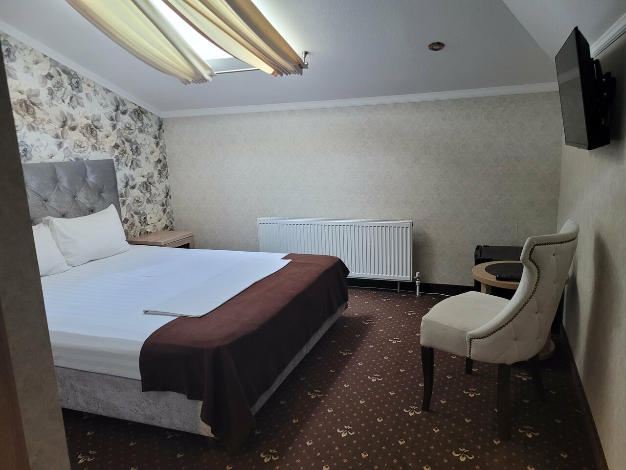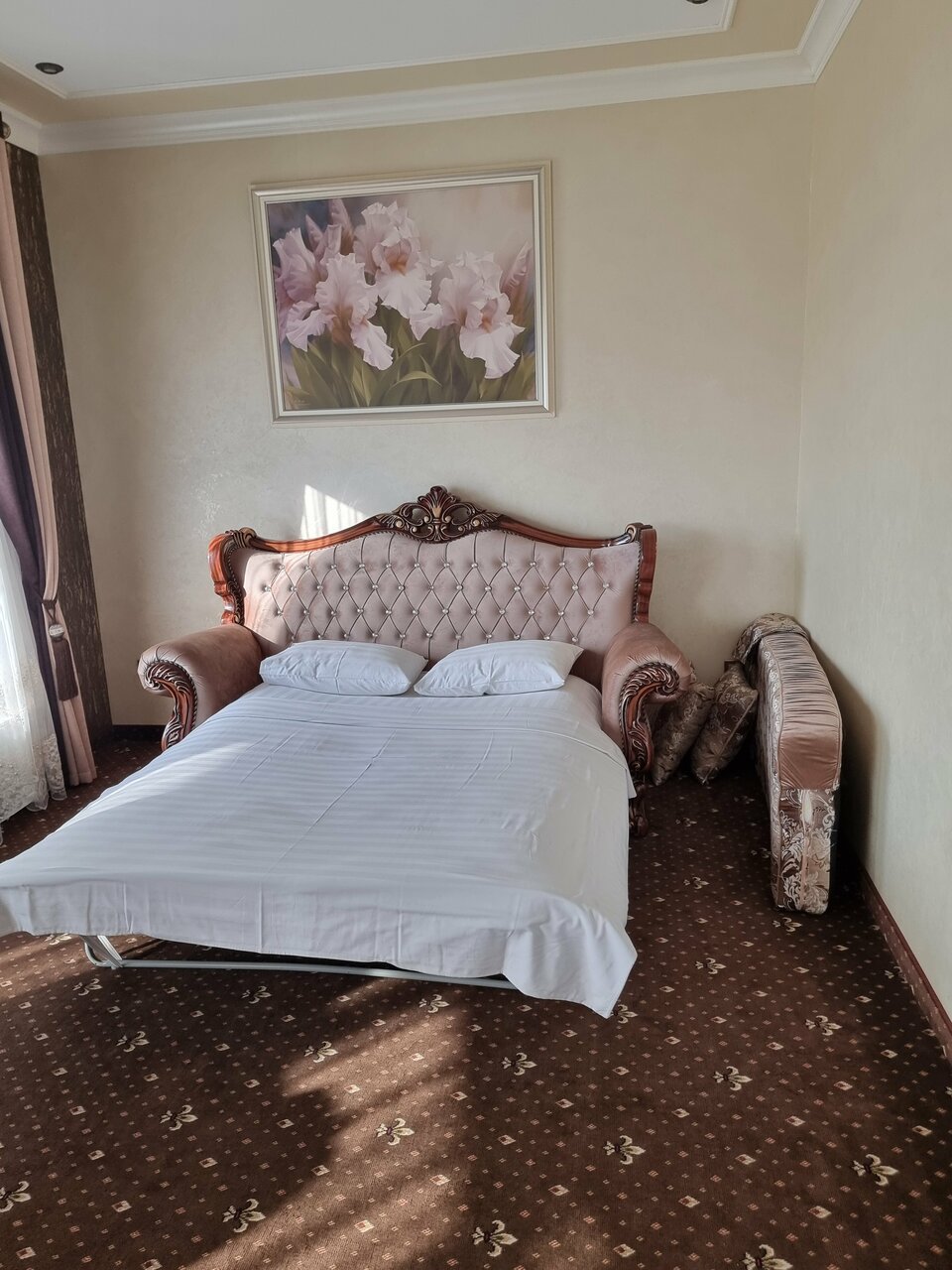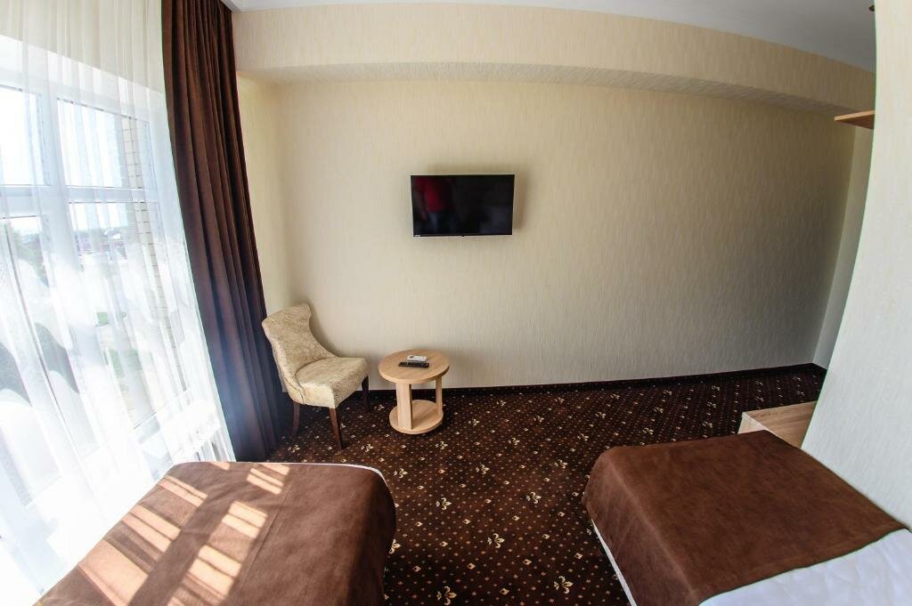 Из плюсов: Шикарный завтрак (4 или 5 меню на выбор) в ресторане на 1м этаже,чистый номер, приятные мелочи(пару бутылок воды в номере, тапочки,индивид.наборы гигиены),просторная парковка,приятный персонал. Из минусов : в Марте 23г номер не отапливался (в санузле холодно, в номере пришлось спать с включенным сплитом). Расположен недалеко от учебного аэродрома,постоянно летают военные самолеты,достаточно шумно даже с закрытыми окнами.