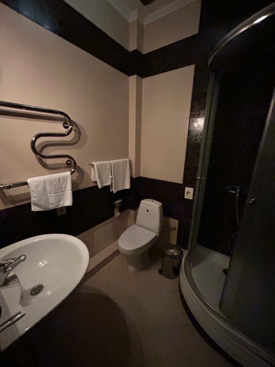 Хороший чистый отель. Остановились на ночь отдохнуть в дороге. Удобное расположение, безопасная парковка для авто возле входа в отель. На ресепшен нас встретил вежливый, клиентоориентированный молодой человек. Нас быстро заселили, номера большие, уютно, есть кондиционер, холодильник. Что немаловажно-хорошая звукоизоляция номеров на 3 этаже, мы не слышали ни соседей ни шум от дороги.