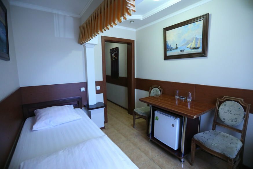 Красивое здание, очень удобно расположен отель, автовокзал в пяти минут хотьбы, вдоль дороги, но от проезжей части отделяют деревья, поэтому не шумно и не пыльно. Внутри может и скромно, но чисто, тихо, персонал доброжелательный, завтраки включены в стоимость, единственное немного неудобно: нет чайника в номере, кипяток приходится набирать в кулере и нести в номер, но все остальное в номере есть: сплит, холодильник, мыло, шампунь каждый день выдают. В общем все понравилось, всем рекомендую.
