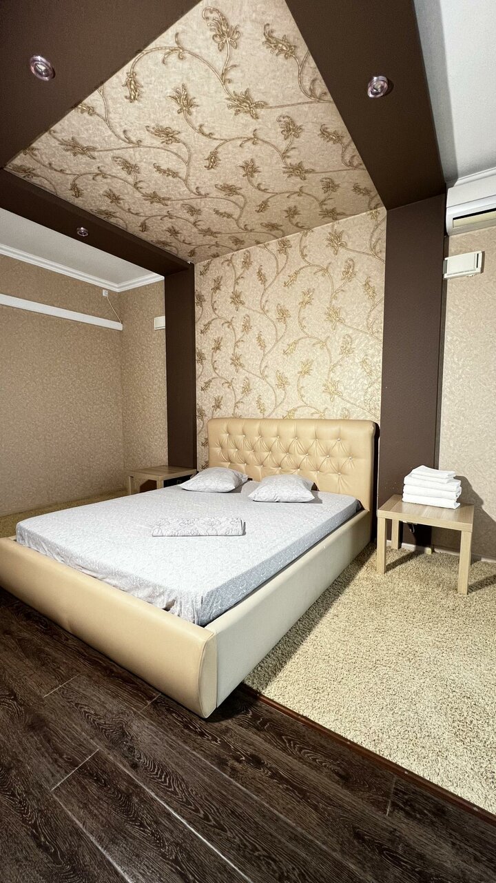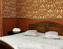 Однокомнатный номер площадью 40 м2 с двуспальной кроватью и гостевой зоной, диваном и журнальным столиком, создан для незабываемого отдыха наших гостей. Комфорт создают мебель из натурального дерева и элегантный дизайн. Ванная комната укомплектована