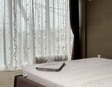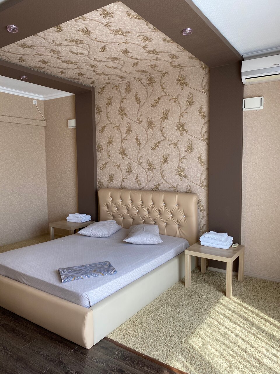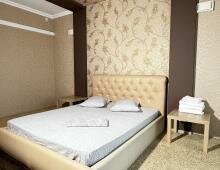 Однокомнатный номер для площадью 21 м2 с двуспальной кроватью и двуспальным диваном. В номере раздельный санузел и душевая кабина.Оснащение номера:Двуспальная кровать, шкаф-купе, прикроватные тумбочки, обеденный стол, стулья, сейф, кондициционер