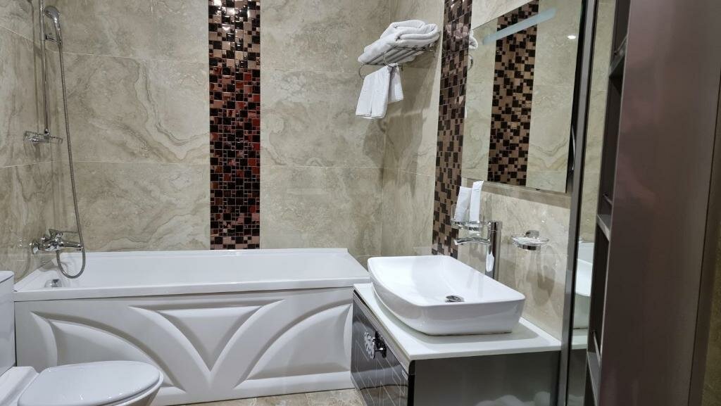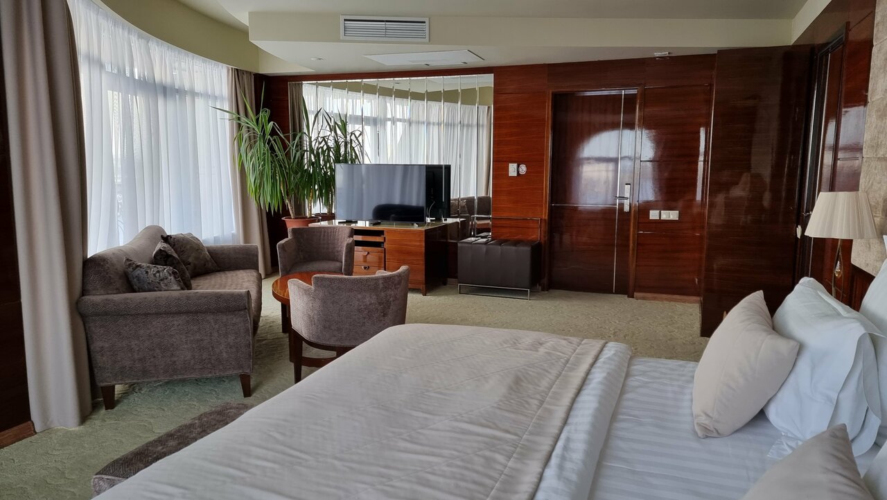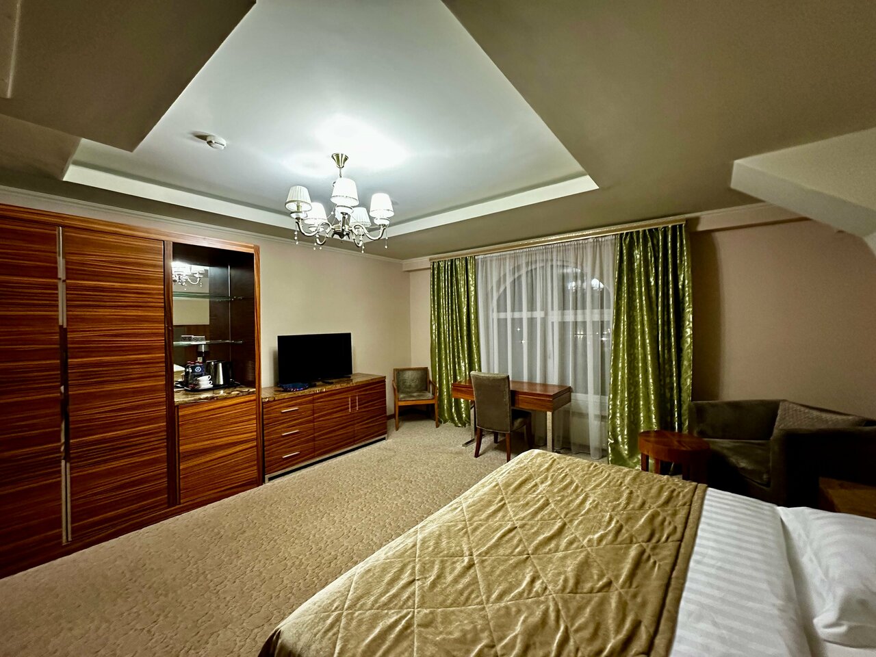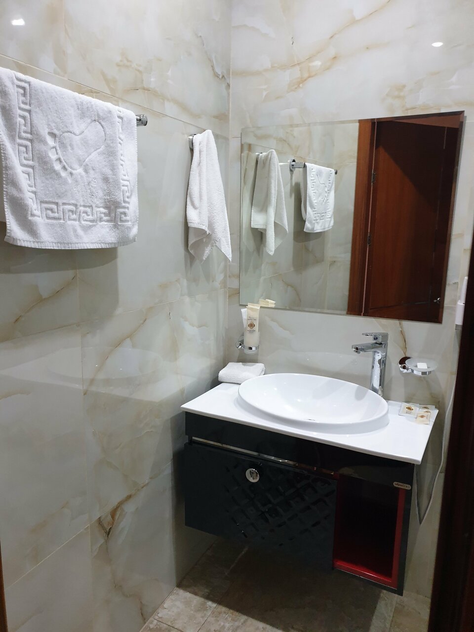 отвратительно грязно в люксе, грязное все кондиционер никакой, жесткий диван, все выглядит так как будто клопы заехали в люкс там где в ванной мокрые полы кто то видимо решил кстроить половодье