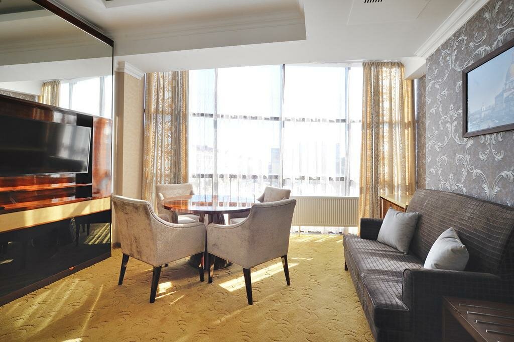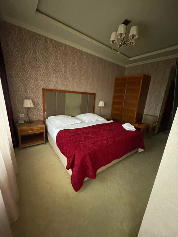 Удобства: парковка, лифт, кафе, джакузи, фен, сейф, чайник, услуги носильщика и дворецкого.