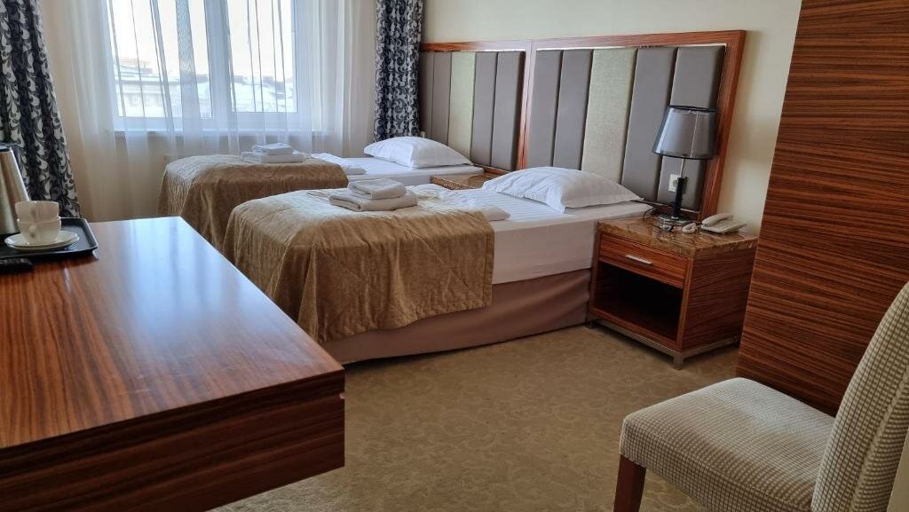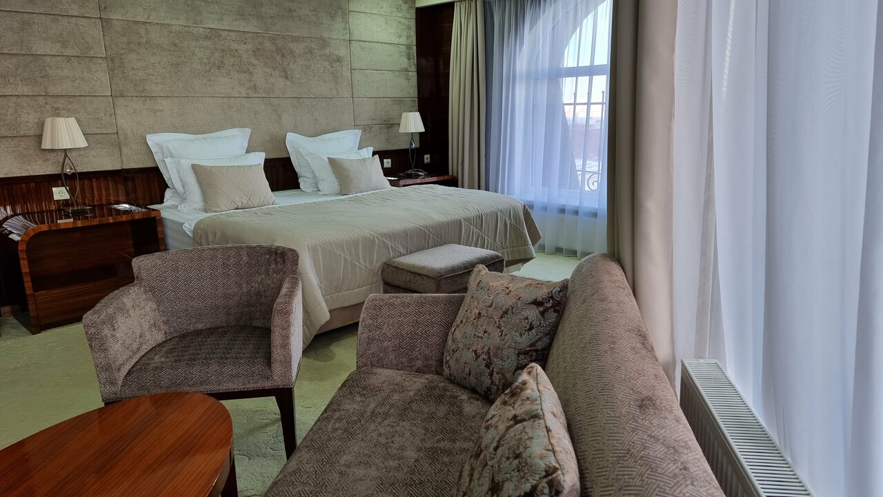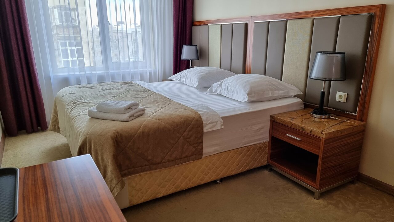 Номер с одной двуспальной кроватью и диван кроватью, рассчитан на 3 х местное размещение, в стоимость номера входит завтрак на три персоны.
