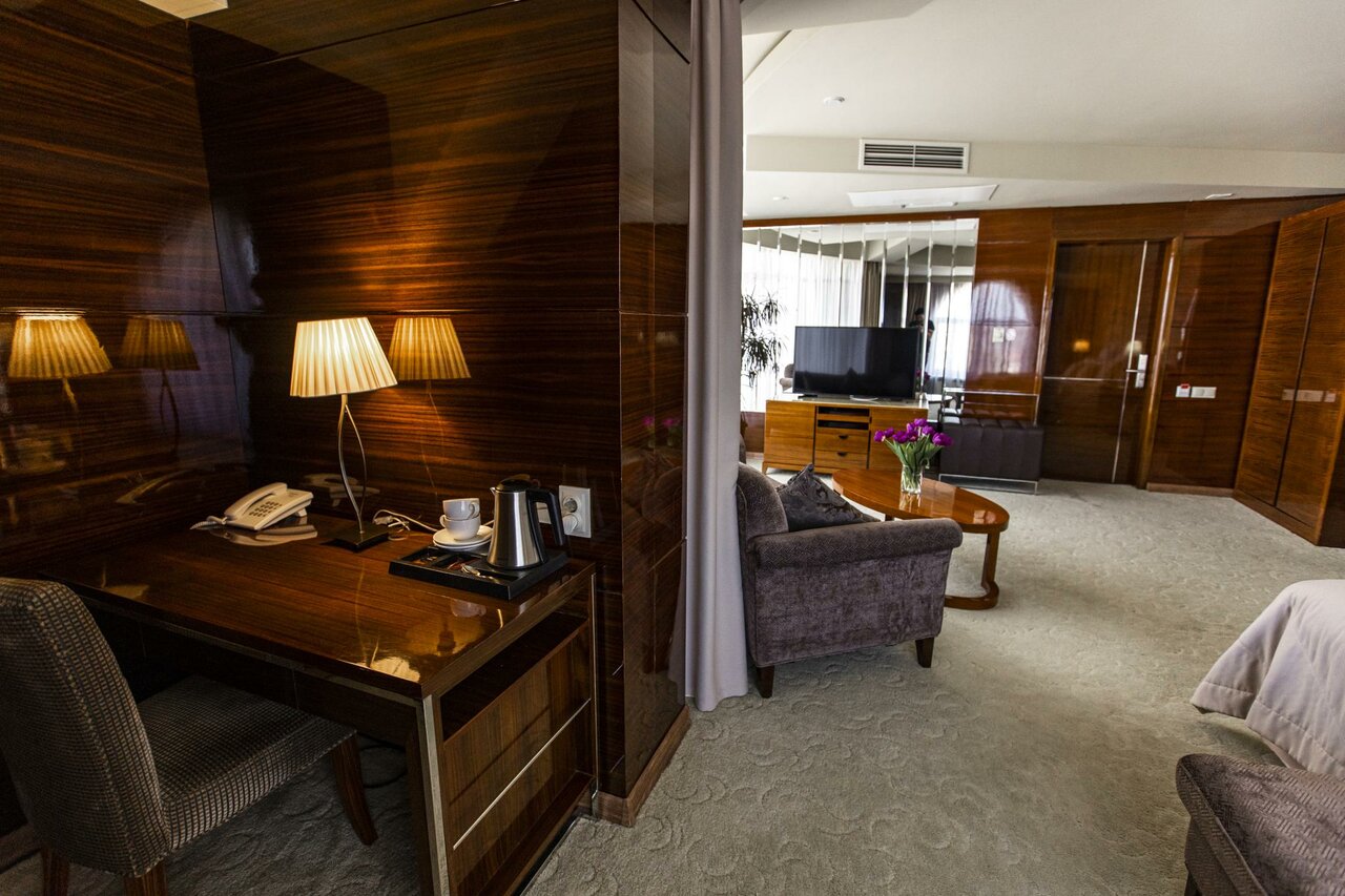 - Возможность завтрака в номере.; Приветливый и отзывчивый персонал.; Хороший интерьер.; Ухоженные и комфортные номера.; Широкая и удобная кровать (в некоторых номерах).