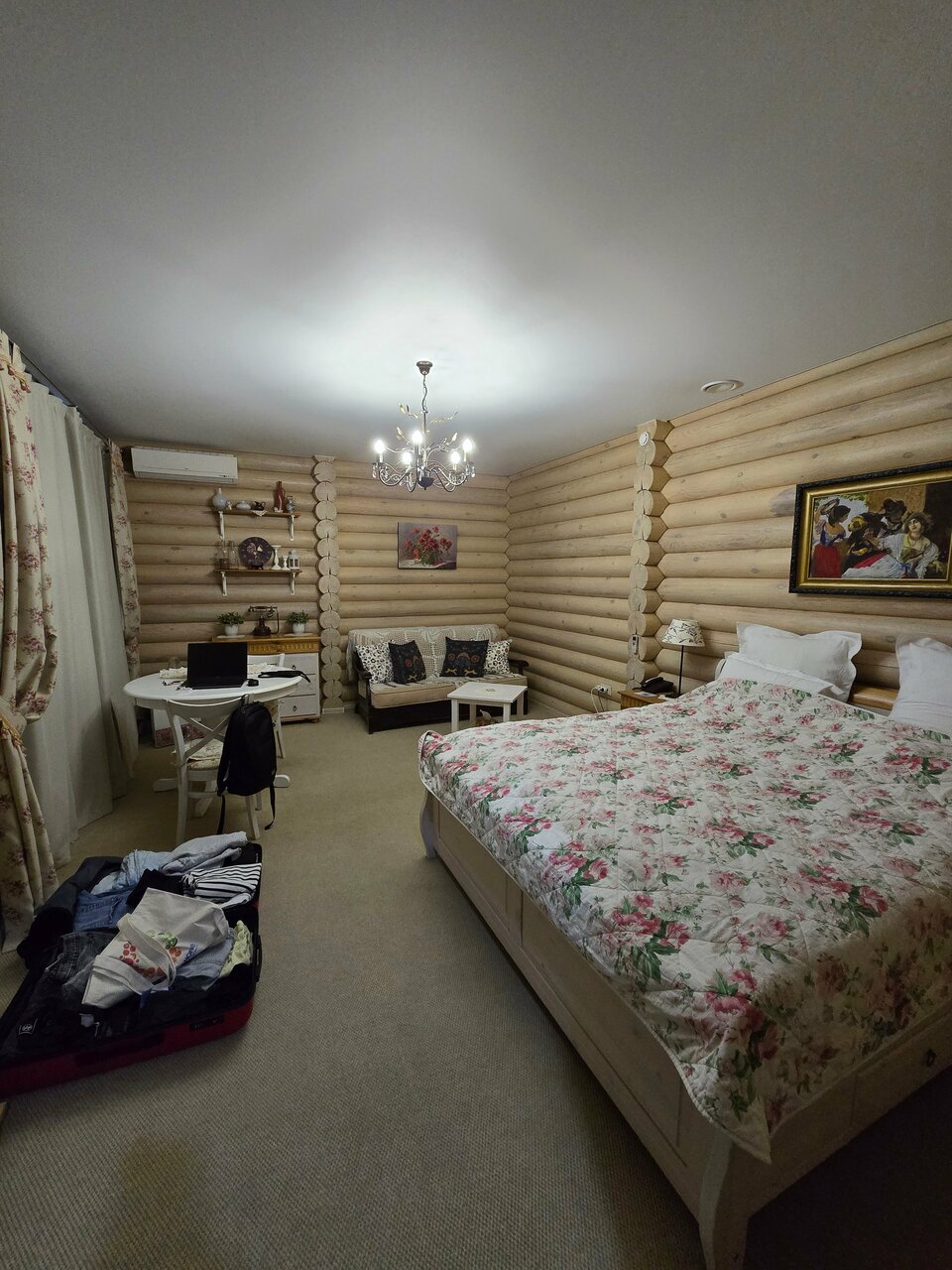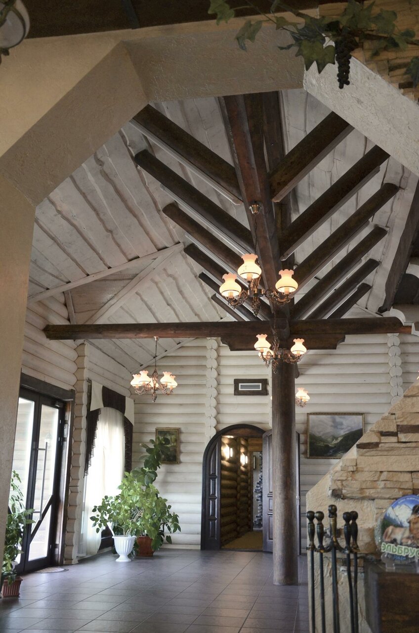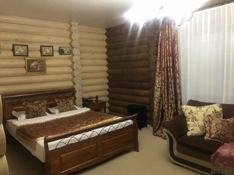 Отель на троечку твёрдую, остановится можно на крайний случай. Решили там переночевать именно из за хороших отзывов, но были немного расстроены не совпадением. Соотношение-Цена качество, приувеличенно. У нас был самый дорогой номер при этом тапочек не хватило, самые дешёвые мыльные Пренадлежности, в туалете полное ведро мусора от прошлых жильцов. Пустой холодильник, отсутствие воды в бутылках в номере за 7 тыс. Руб. Такого нет нигде. Светильники не работают, часы стоят. Сантехника местами потрепанная. Джакузи и душевая кабина работают частично. Кавролин только в спальне. На рецепшене тусклый свет и пыльные бревенчатые стены и пыльные искусственные деревья сразу создают недоверие к этому месту. Кафе, которое нам посоветовали на рецепшн, год как не работает с доставкой. Из плюсов только чистое постельное, вкусный завтрак приветливая девушка, которая их готовит.