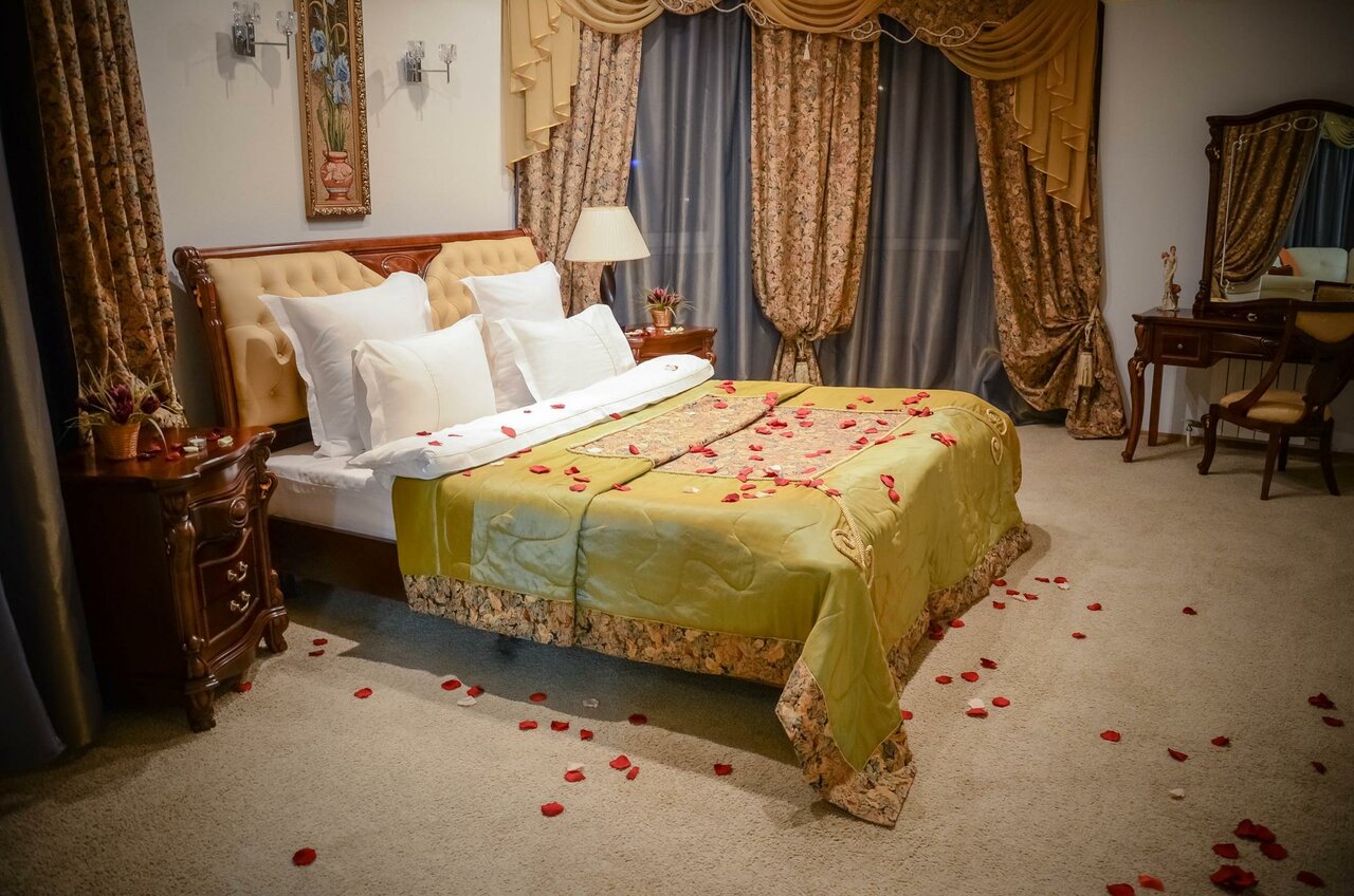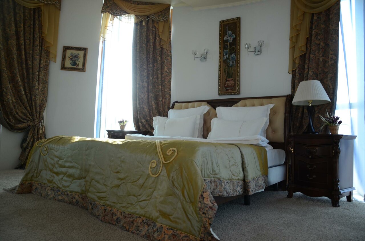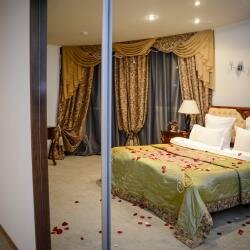 К данной категории относится № 16. Номер расположен на 3-ем этаже, есть возможность организации доп. места. Номер состоит из спальни, гостиной, ванной комнаты и дополнительного сан узла. В ванной комнате: фен, душевая кабина, ванна джакузи, сан узел.