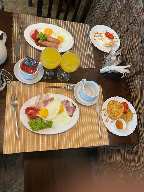 Прекрасное место! Рекомендую всем, едущим на Кавказ на мотоциклах. Теплые уютные номера, территория на ночь закрывается. Мотоциклы можно поставить чуть не у двери номера) персонал максимально вежлив и заботлив. Мы приехали мокрые до нитки, так все вещи развесили в котельной, к утру все было в норме. Отдельная песня — это завтраки. Заказ принимается с вечера на , вариантов приготовления множество. Подают точно к оговоренному времени, сервировка восхитительная. И администратор, и повар максимально учтивы, доброжелательны и приветливы. Побольше бы таких мест! Пять звёзд мало для выражения моей благодарности