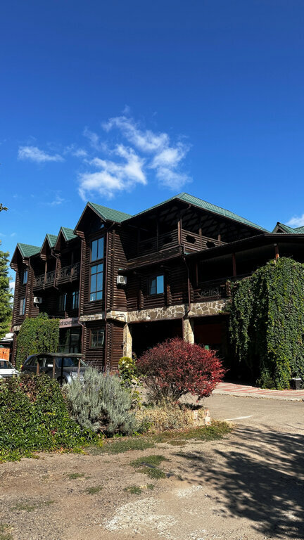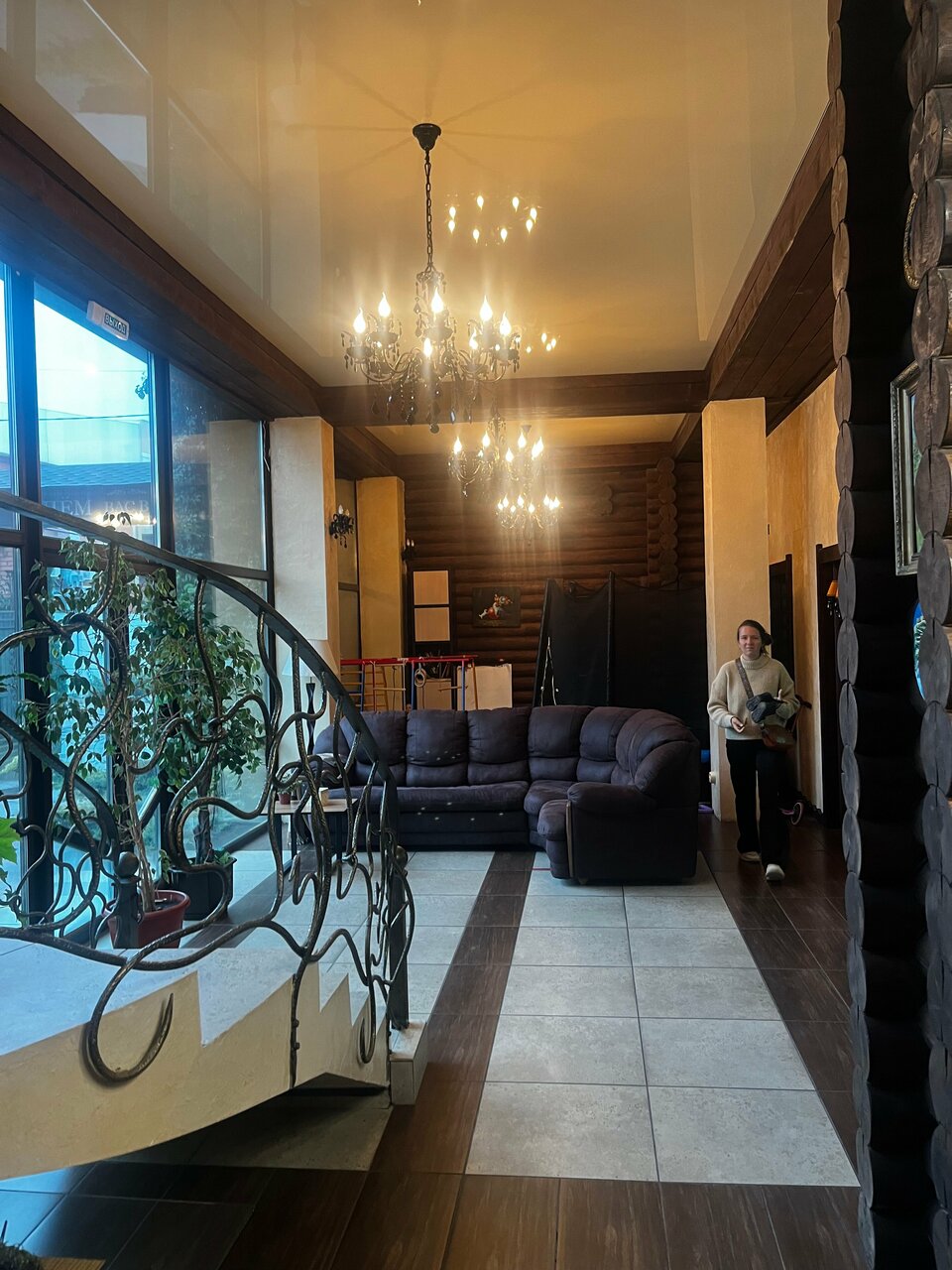 Очень интересное место. Бывал в разных гостиницах, но в такой впервые. Деревянное строение из бруса. Очень спокойное и вежливое отношение сотрудников. Великолепная тепло и шумоизоляция. Удобное местоположение. Собственная парковка. Очень достойная кухня и обслуживание. А больше всего приятно удивил живой уголок со зверушками и попугайчиками.