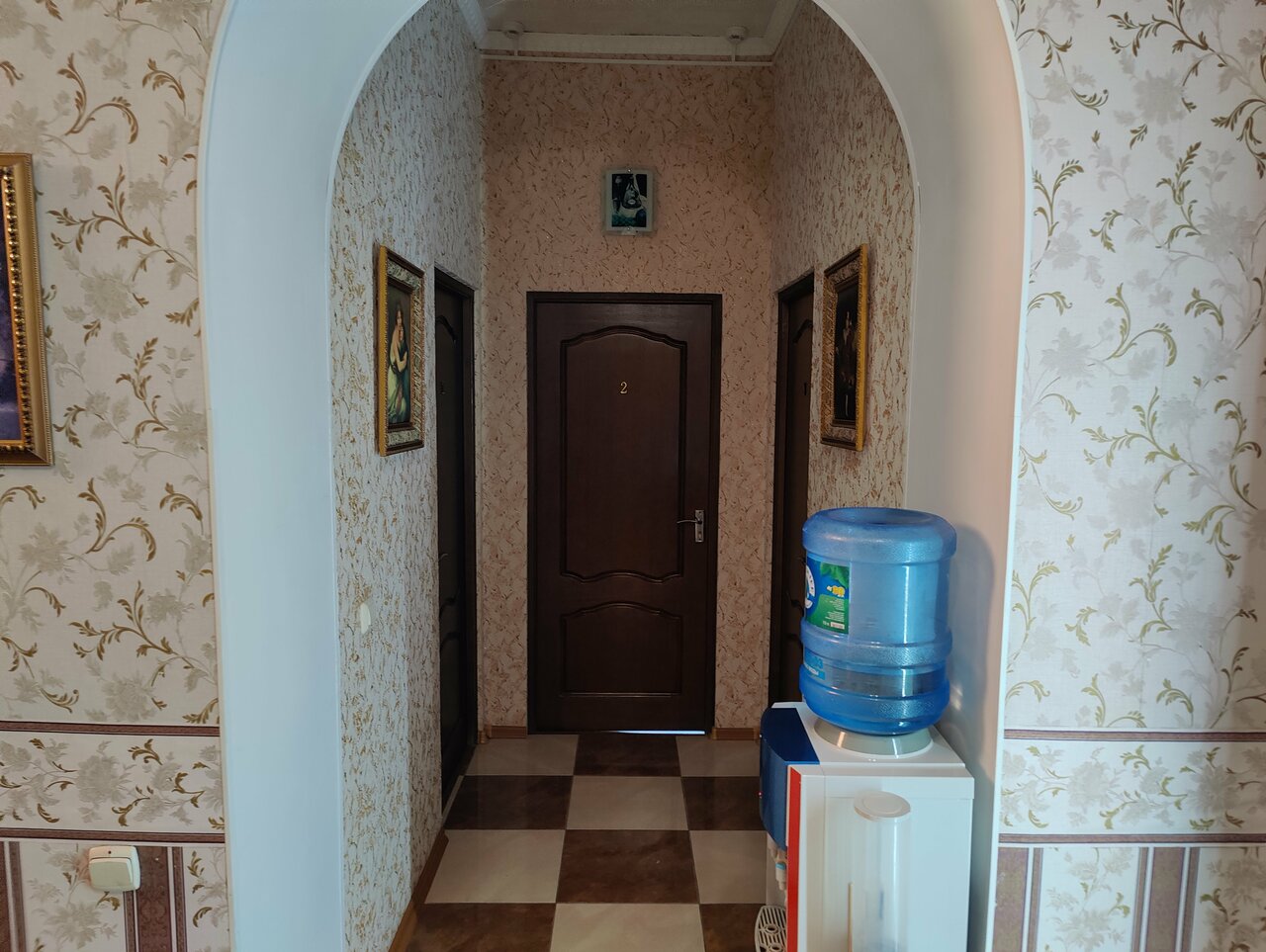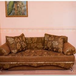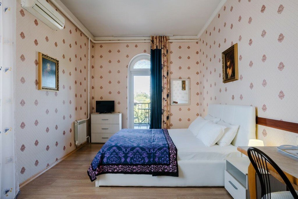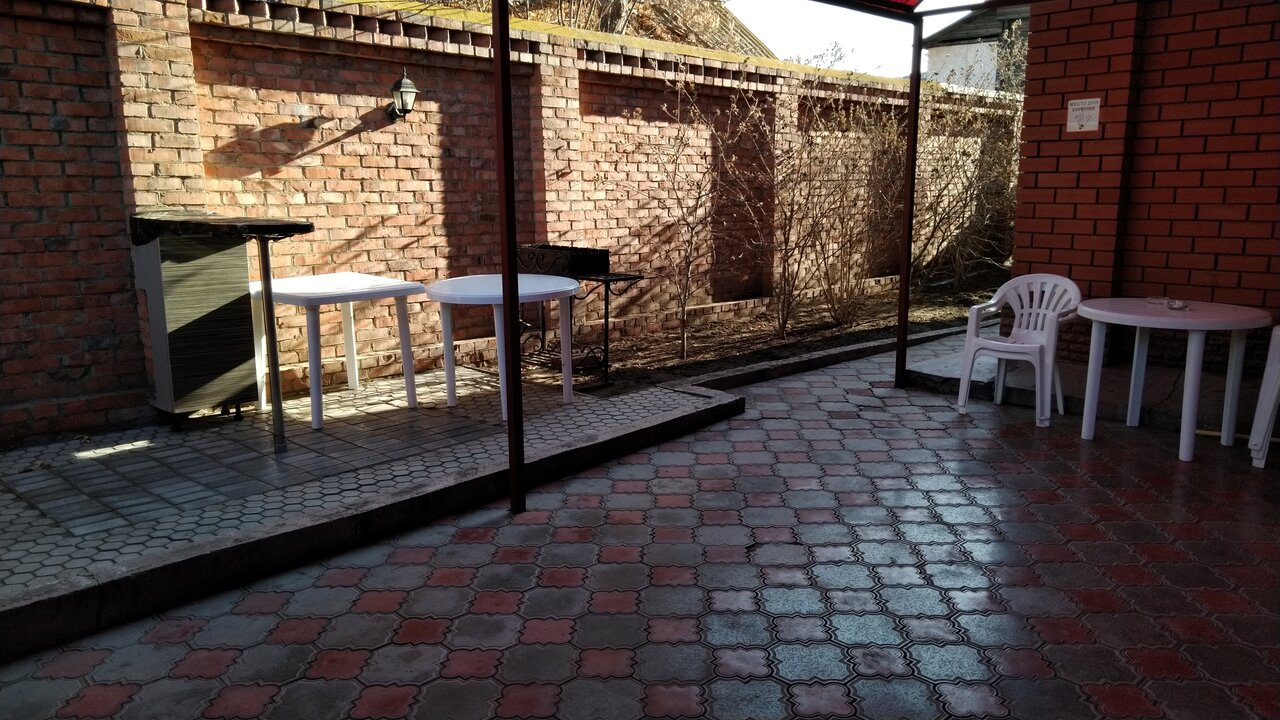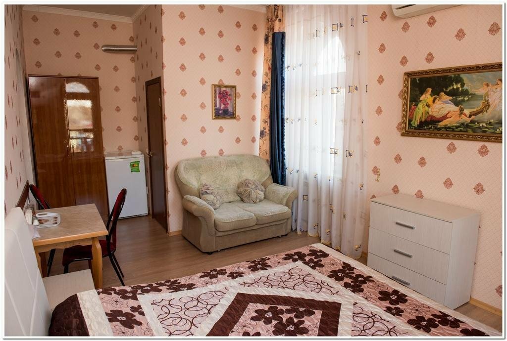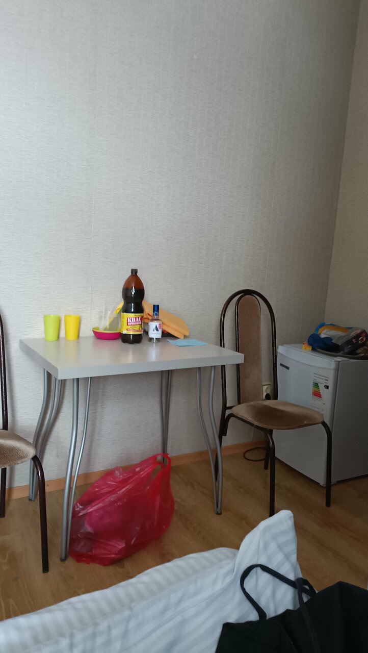 Небольшой отель. Сначала вышло недоразумение по стоимости: мы бронировали за 2800, без завтрака. Бронь пришла уже по стоимости 3100, также без завтрака. В номере имеется холодильник, на этаже кулер. Обычный номер:двуспальная кровать и диван. По чистоте ‘хромает’.