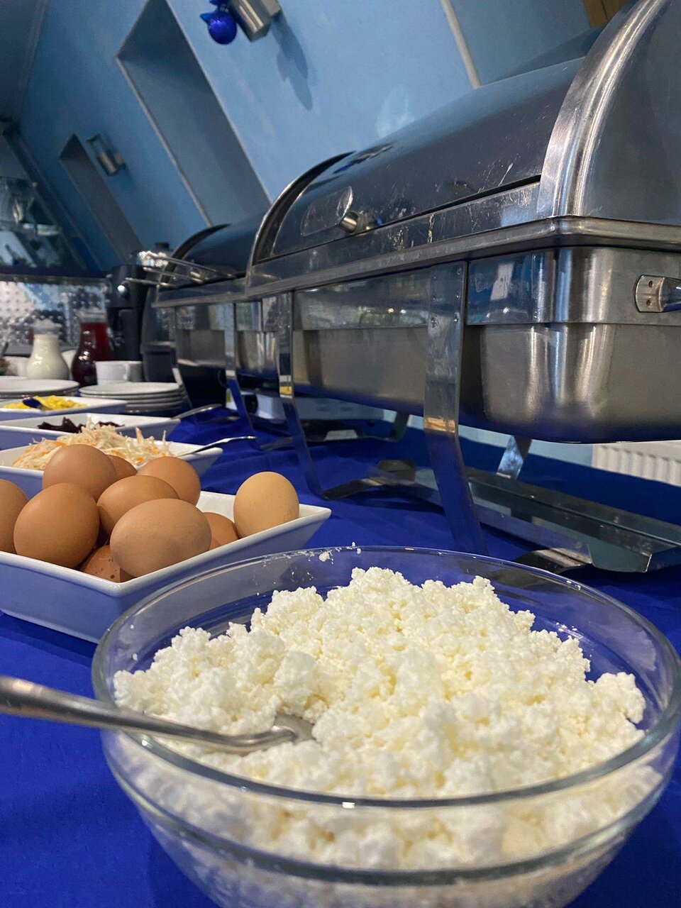 - Вкусные завтраки (оладьи, шведский стол, каши, омлеты, запеканка, сгущёнка, мёд).