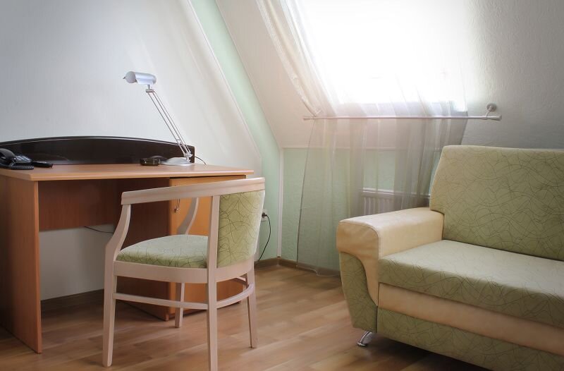 В гостинице на удивление просторные номера, помимо кровати был диван в номере. Чистое постельное, убрано в номере, отдельно в номере душ и санузел, тоже просторный. Из минусов напор воды горячей. Завтраки тоже порадовали, был ассортимент, было кофе, напитки и сладкое. Из минусов каждый день одно и тоже.