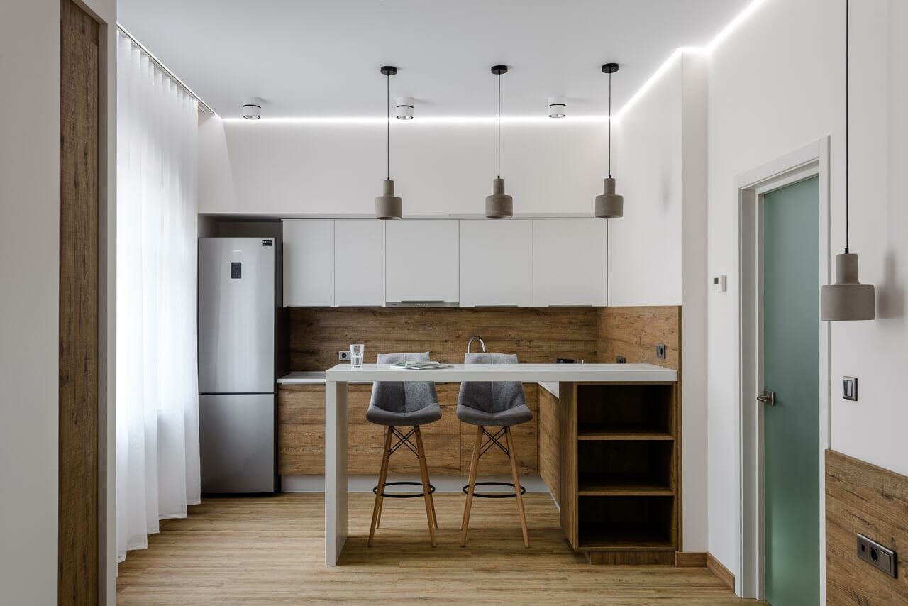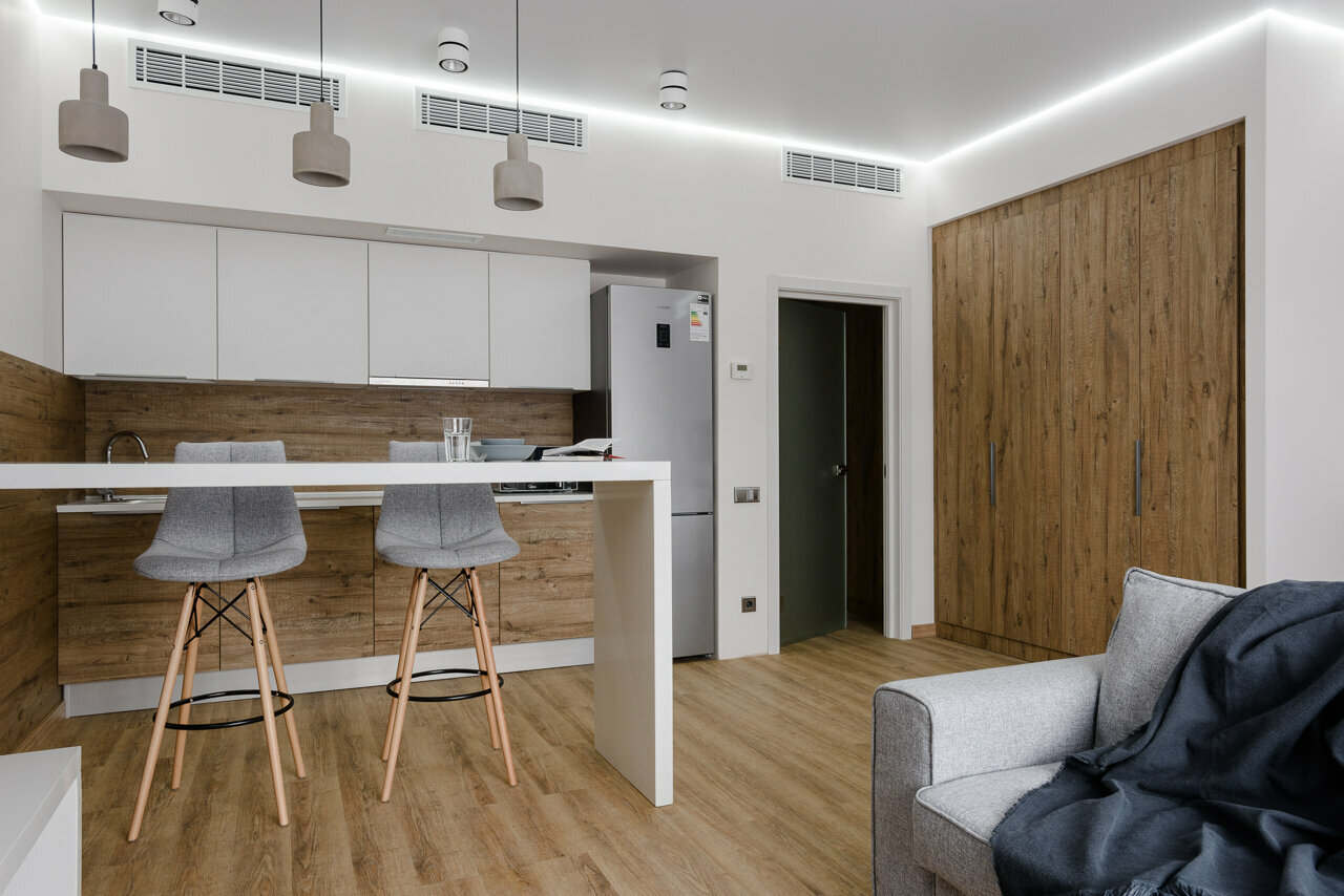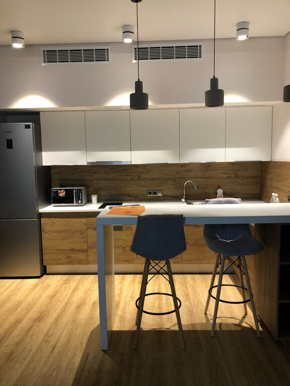 - Полная оснащённость апартаментов (кухня, стиральная машина, посуда, мелочи).