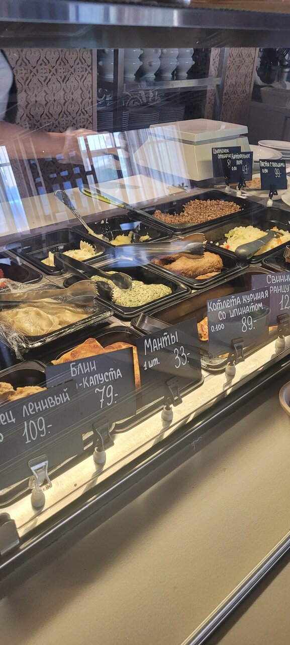 - Скромный выбор на шведском столе.